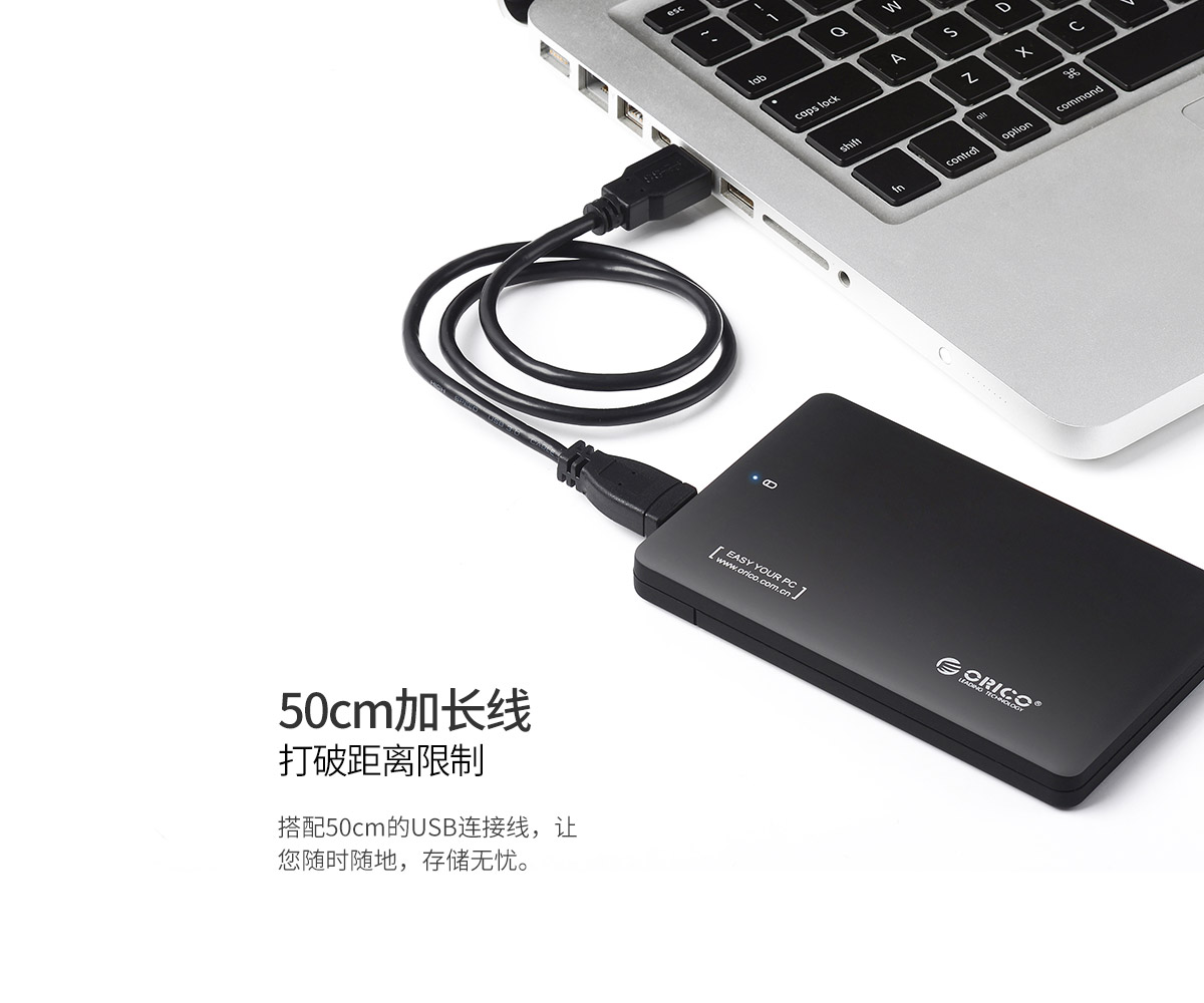 2.5英寸USB3.0移动硬盘盒,50cm加长数据线