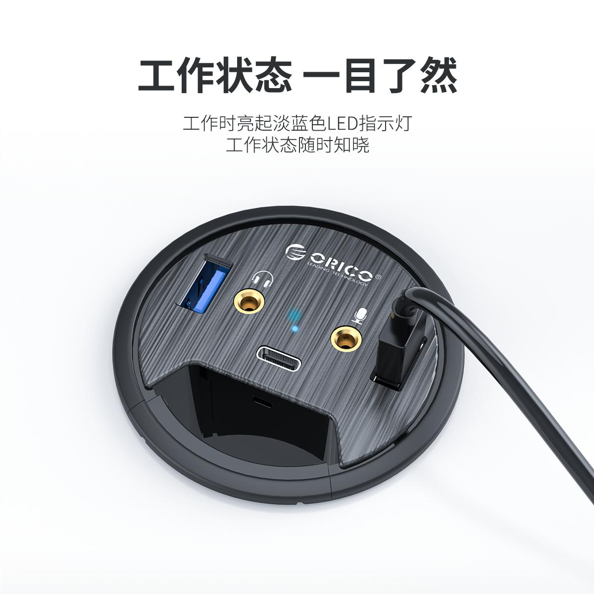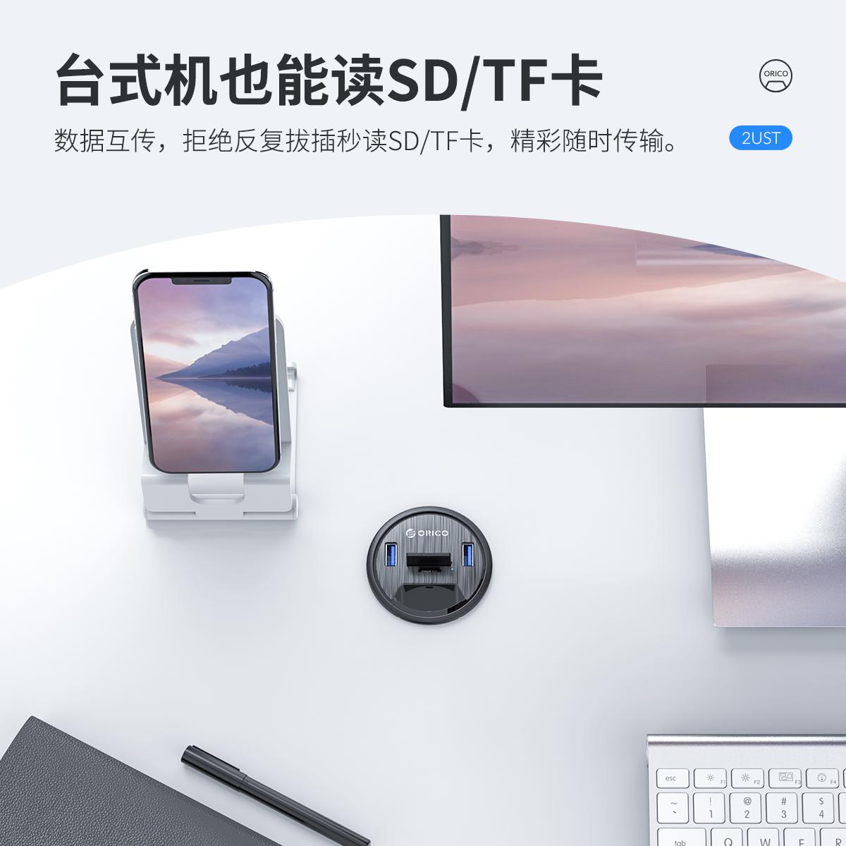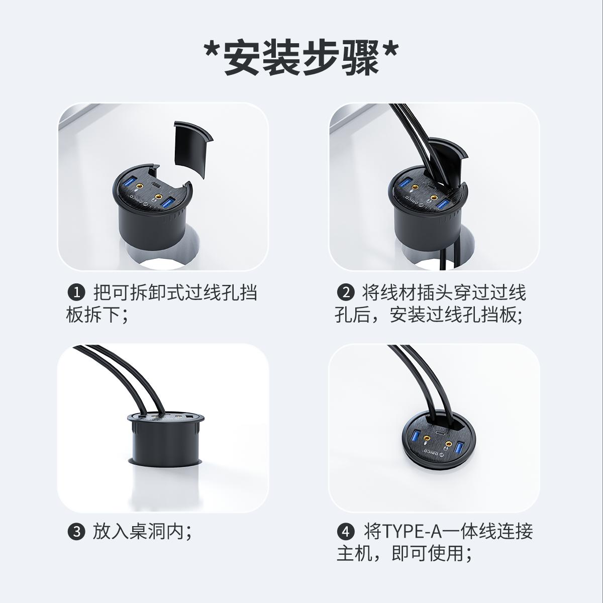 集线器,桌洞集线器,USB3.0, 音频口,支持麦克风,读卡,SD,TF,5Gbps,Type-C,多功能,系统兼容,免驱动,免工具安装