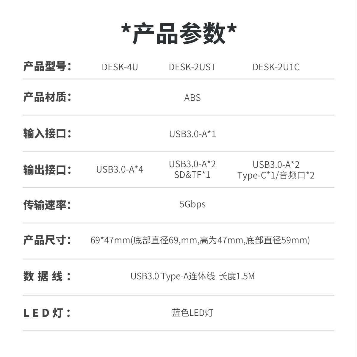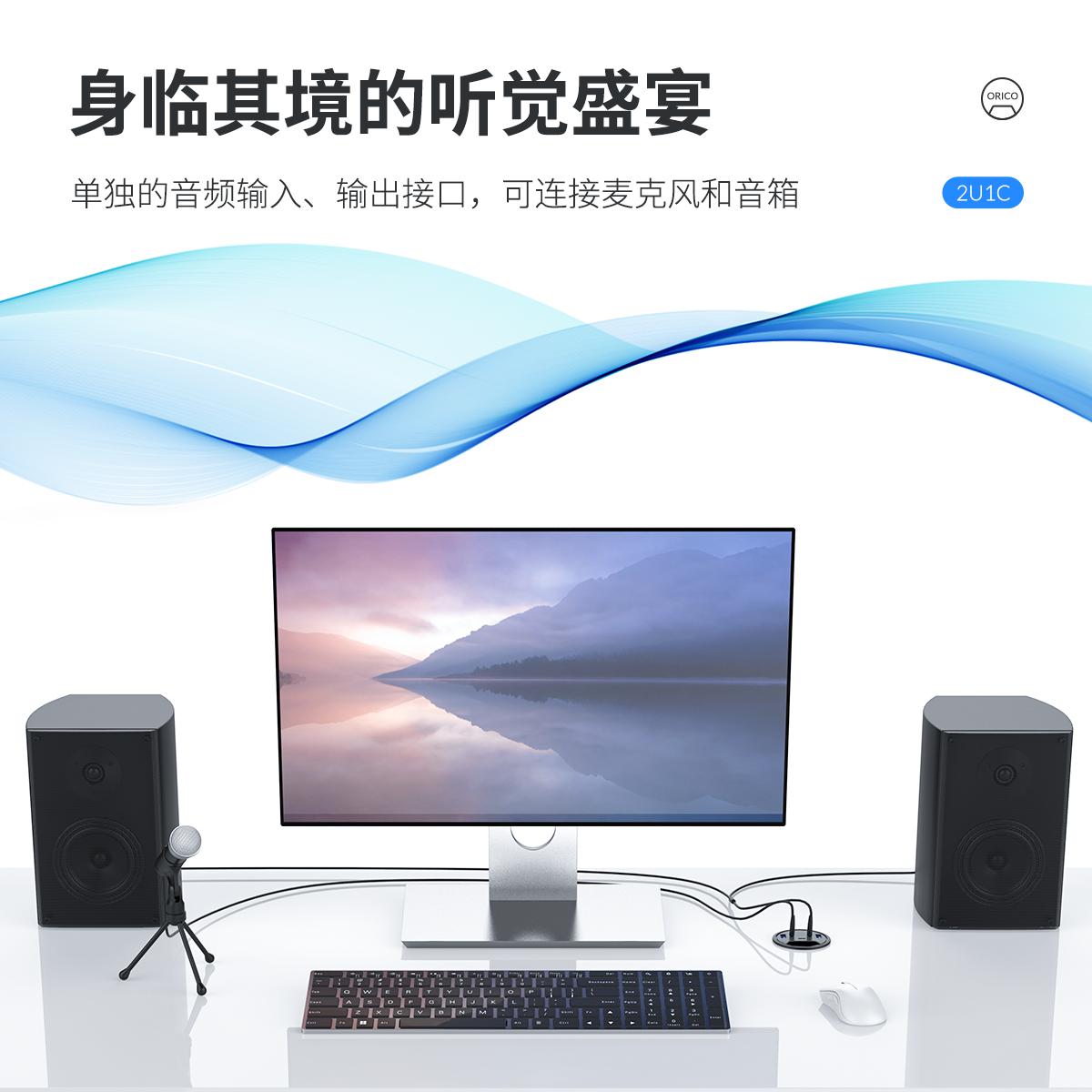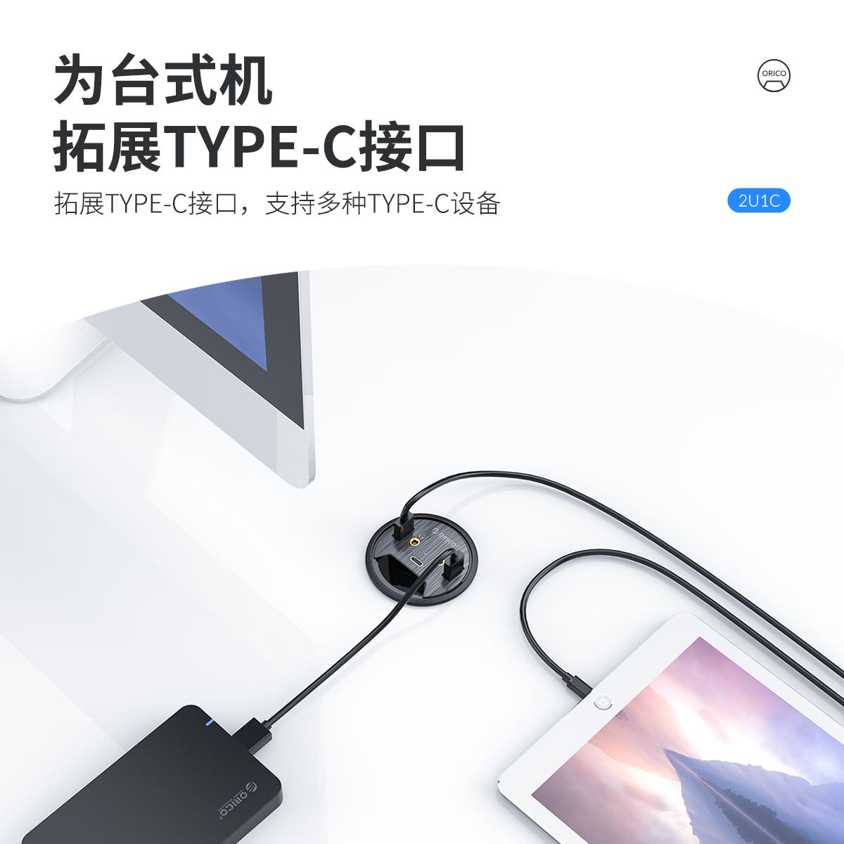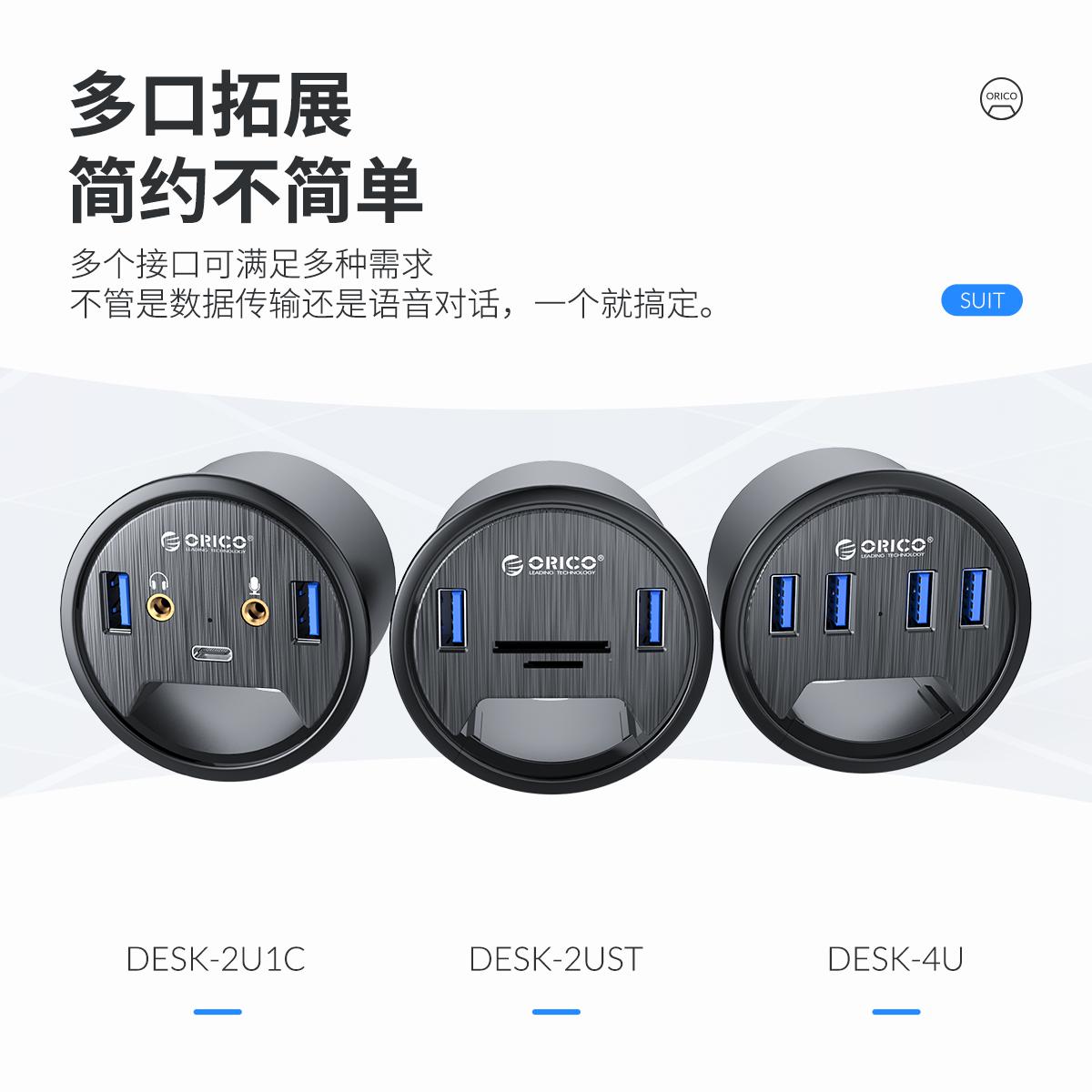 集线器,桌洞集线器,USB3.0, 音频口,支持麦克风,读卡,SD,TF,5Gbps,Type-C,多功能,系统兼容,免驱动,免工具安装