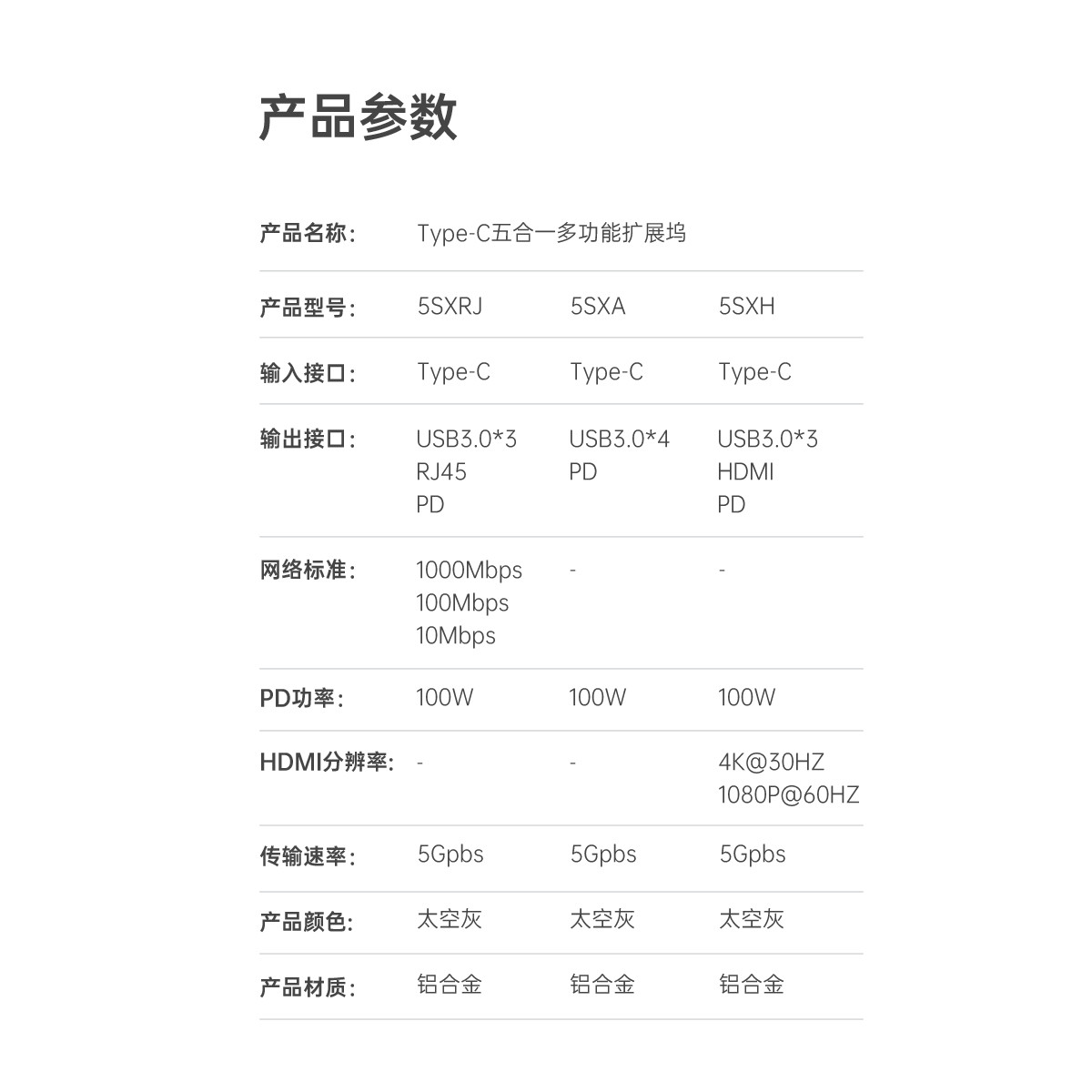 Type-C五合一多功能扩展坞