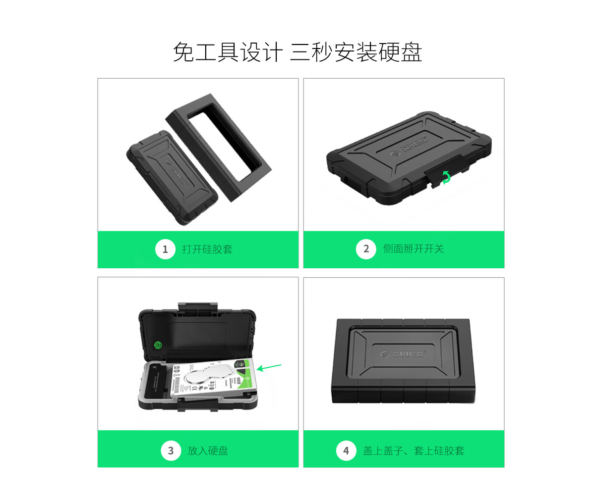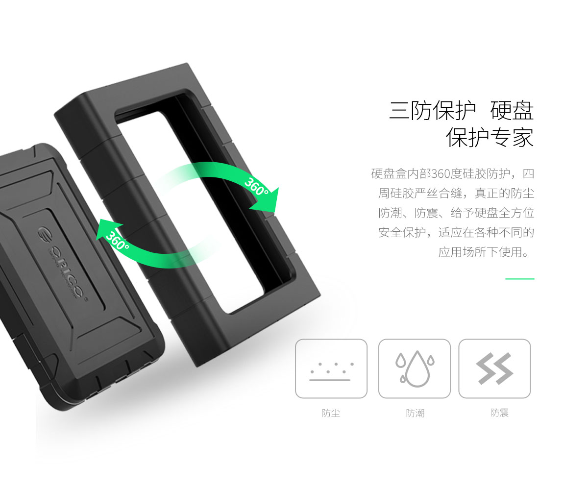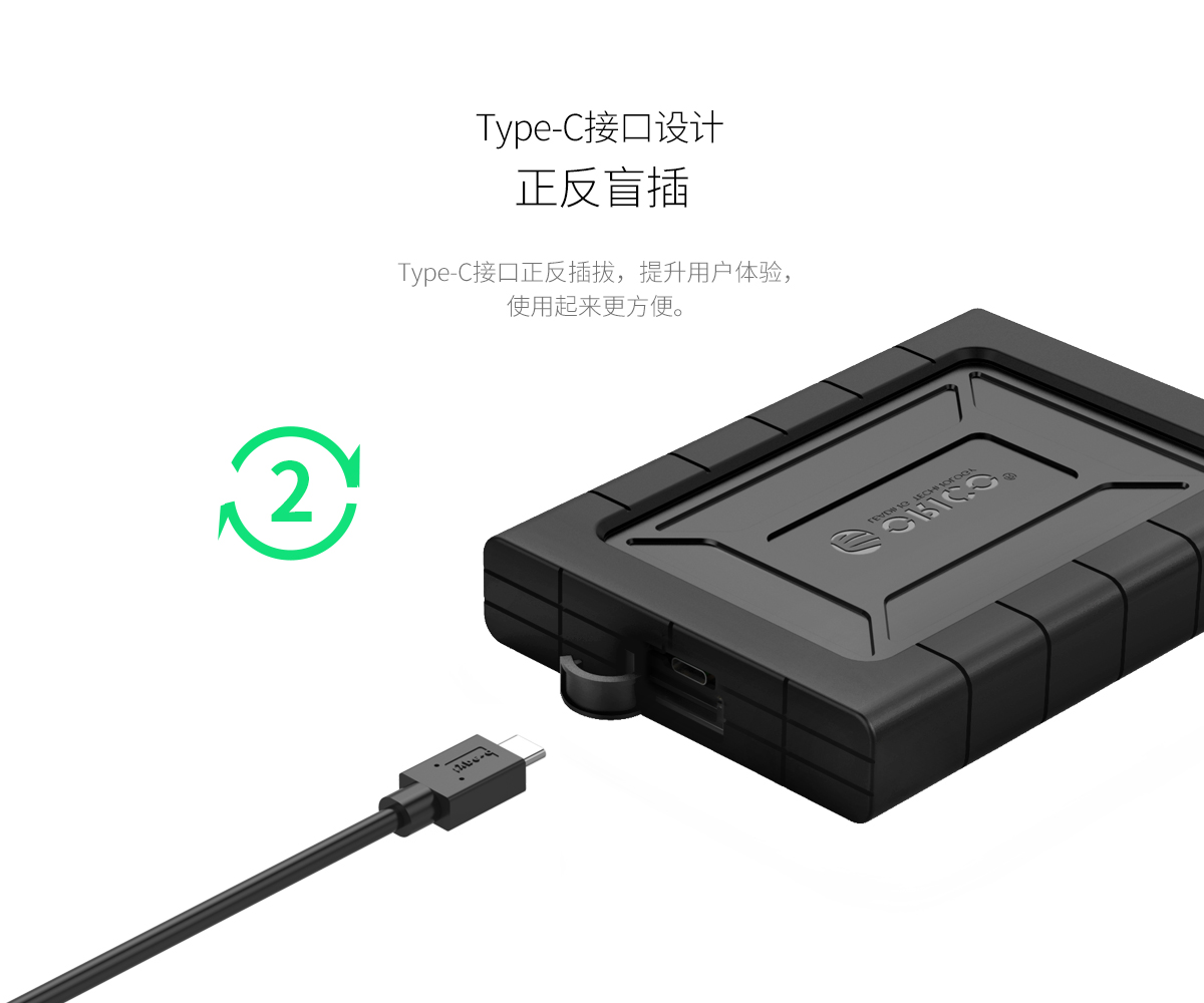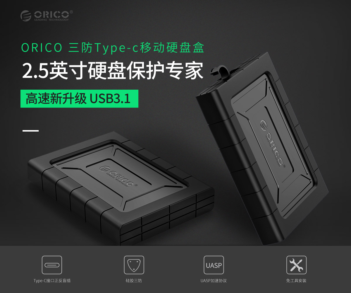 2.5英寸USB3.1 Type-C移动硬盘盒,360度硅胶防护