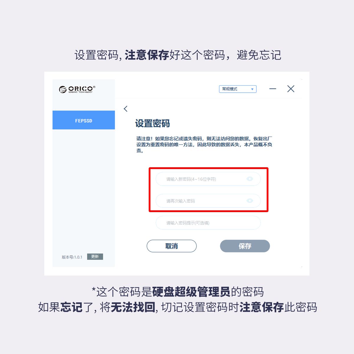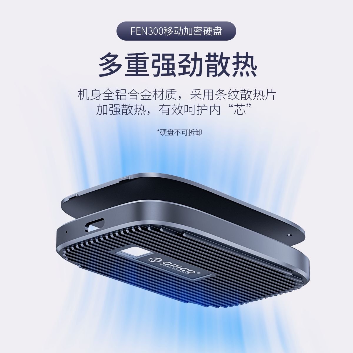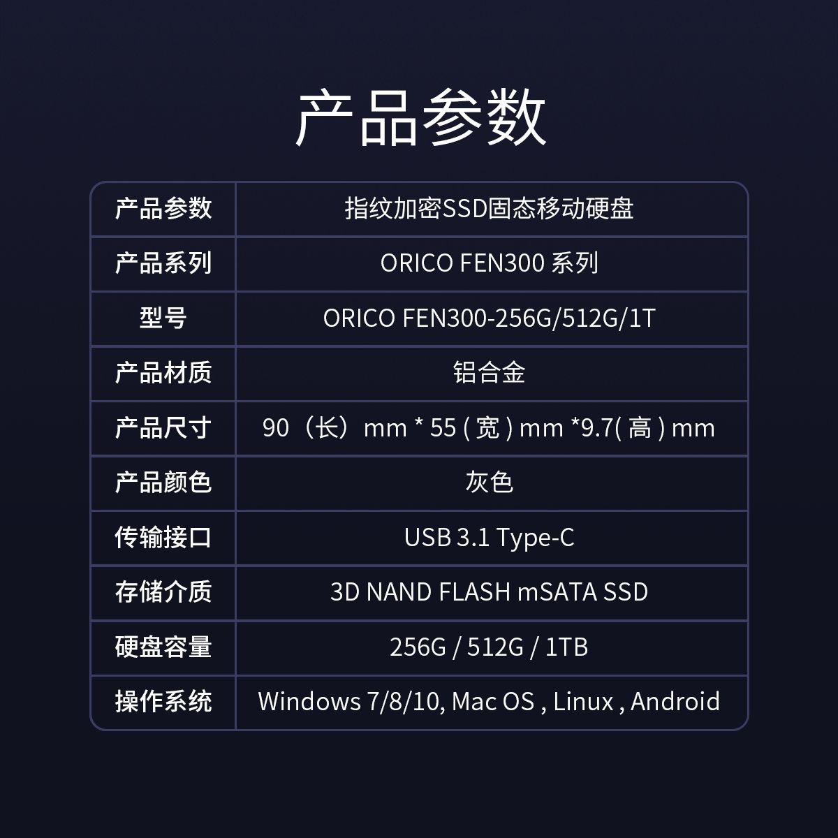 ORICO FEN300指纹加密移动固态硬盘256GB/512GB/1TB USB3.1 Type-C,450MB/s读写