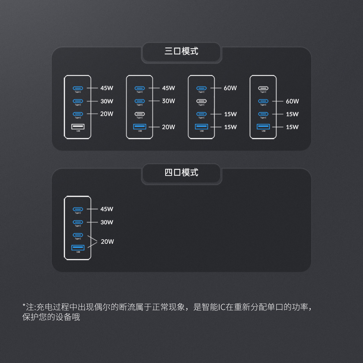 C1+C2+USB-A 45W PD+18W PD+30W QC;