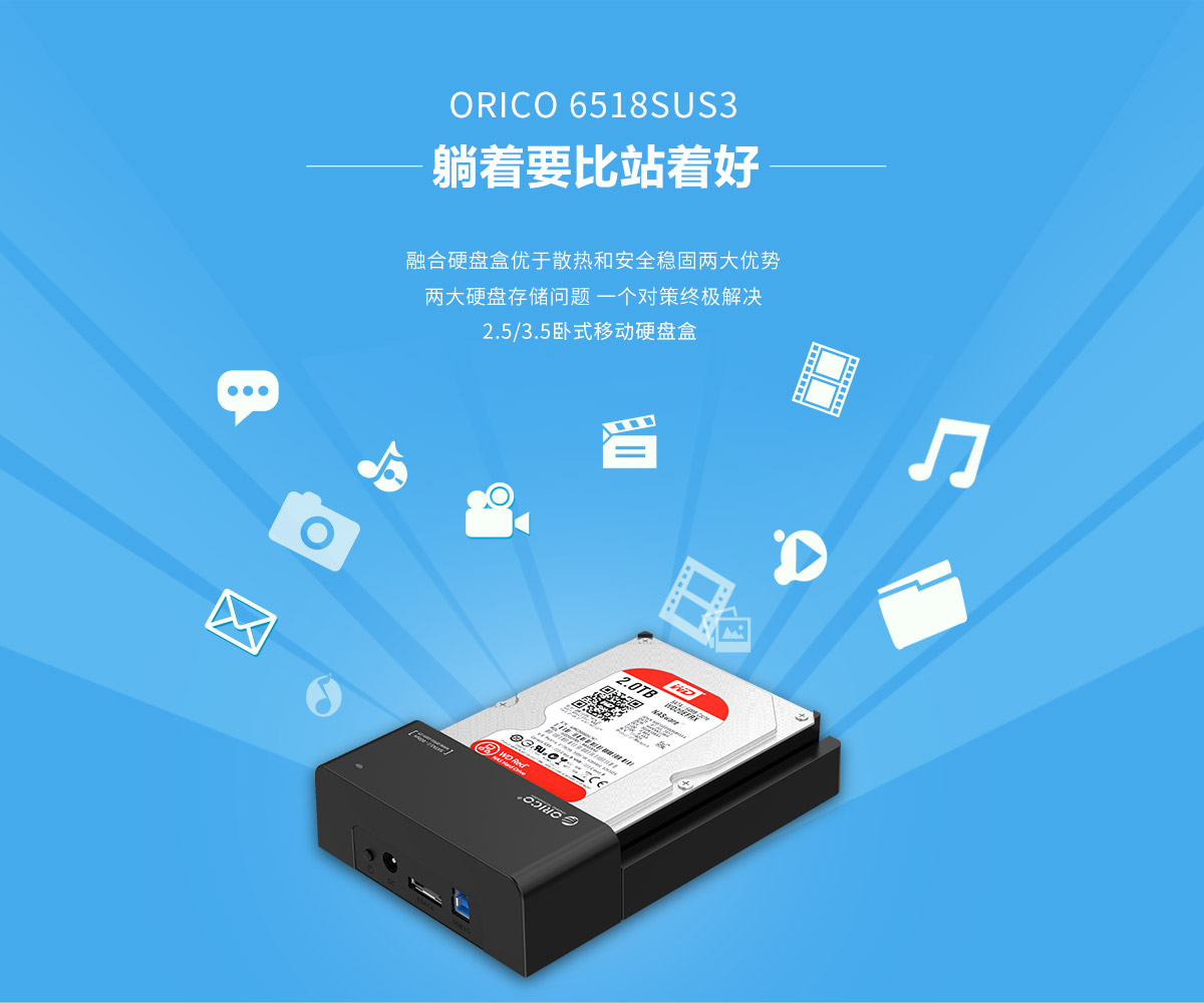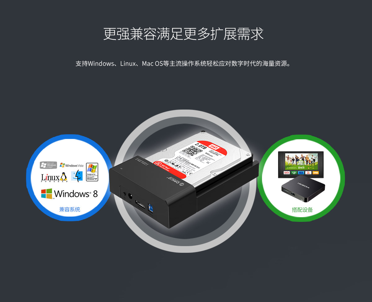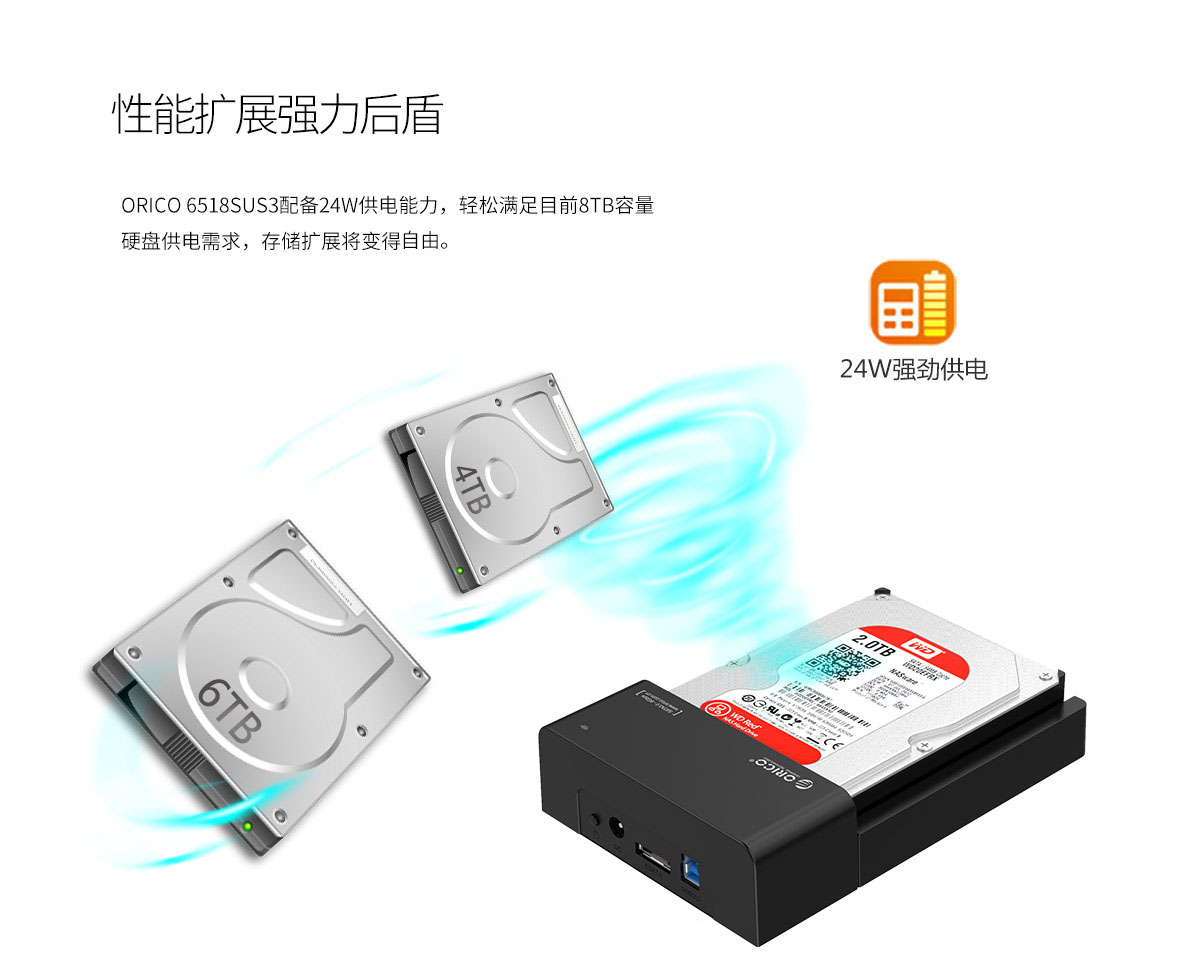 USB3.0接口,5Gbps理论速率,支持18TB大容量,24W强劲供电,开放式散热