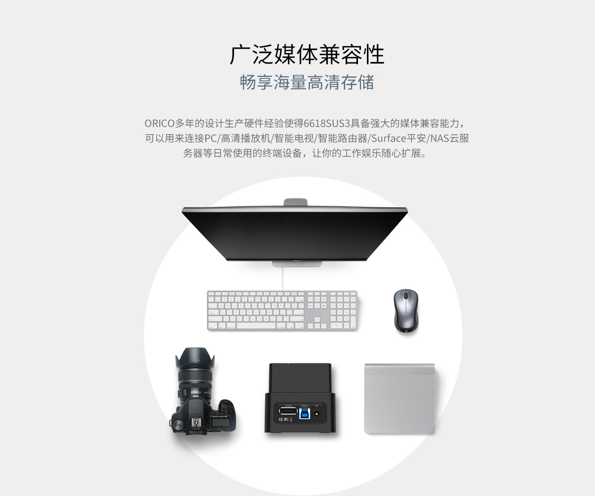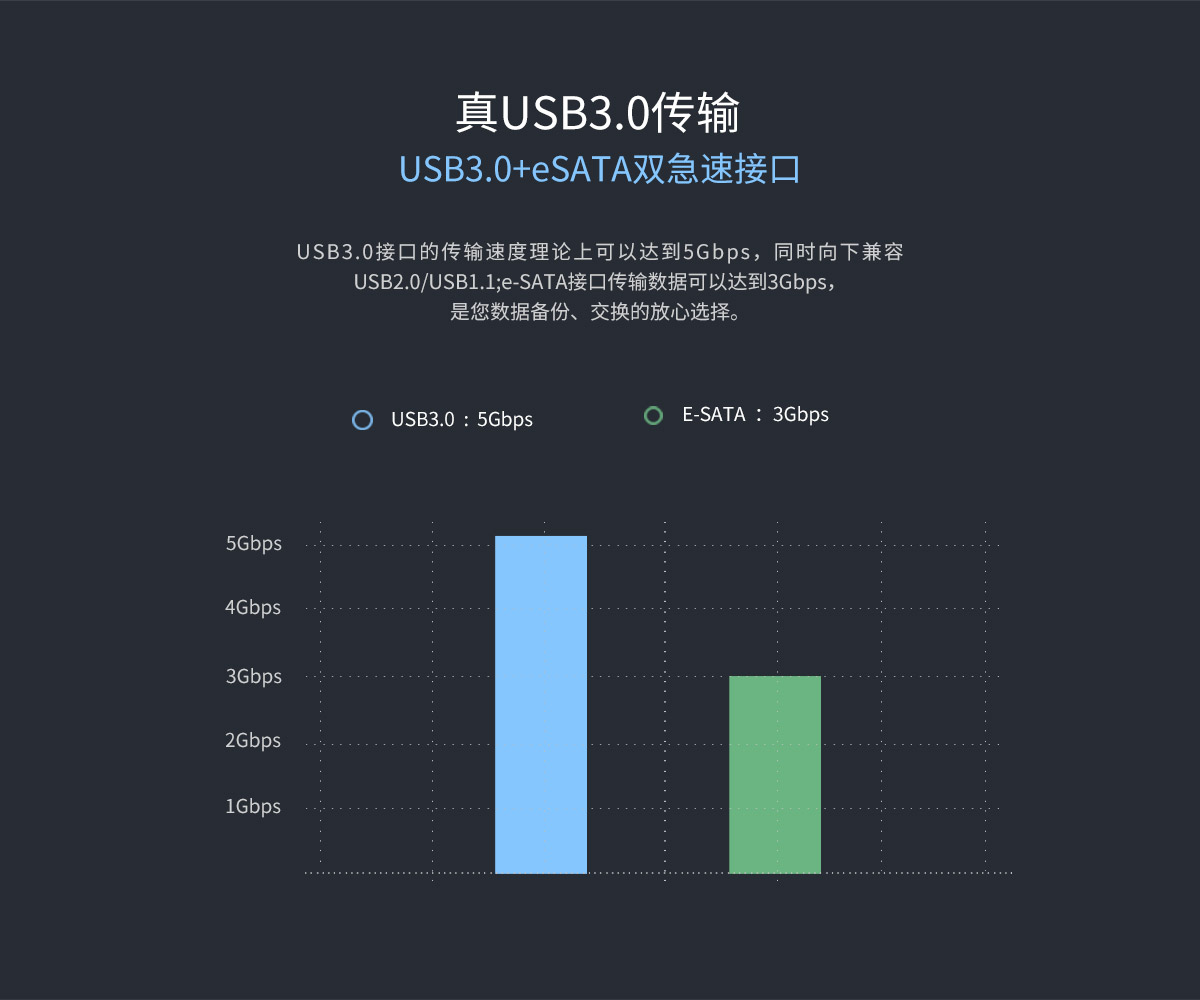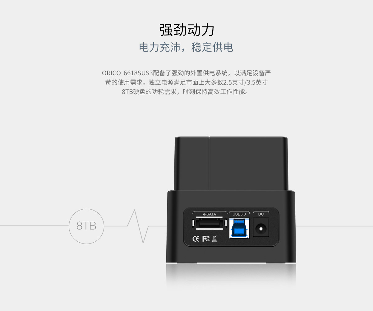 支持8TB容量,免工具安装,USB3.0+eSATA双接口,外置电源稳定供电