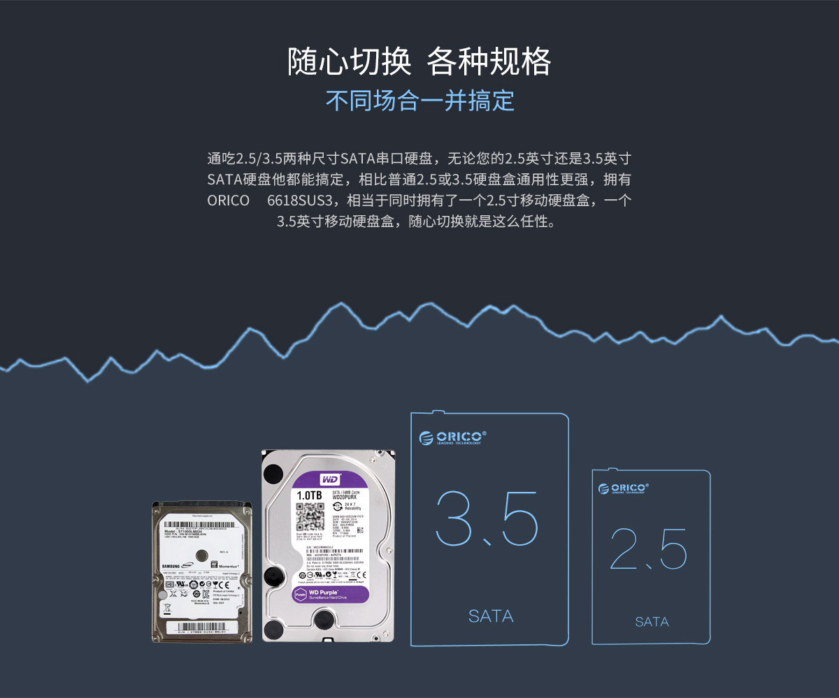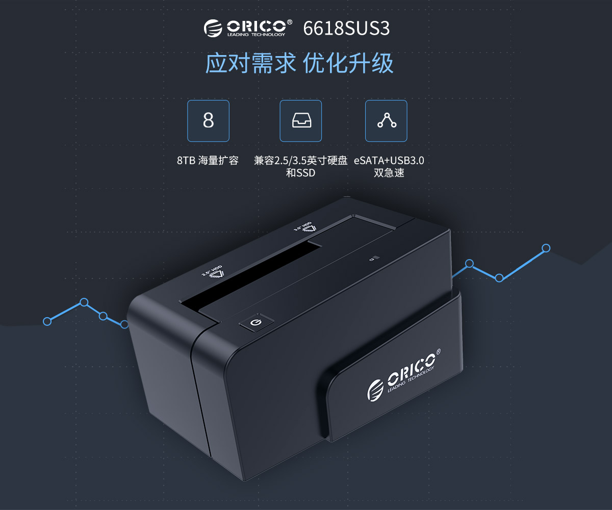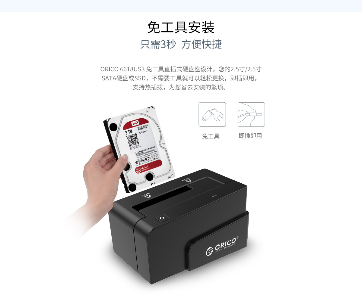 支持8TB容量,免工具安装,USB3.0+eSATA双接口,外置电源稳定供电