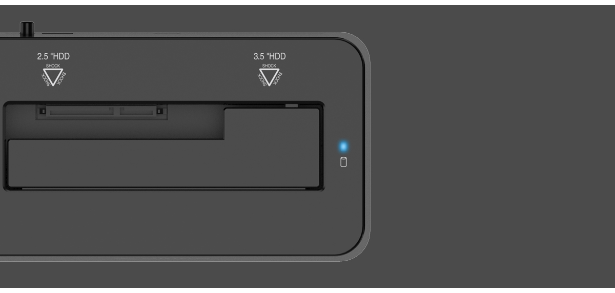 ORICO 6619C3配备温和不刺眼的LED灯,蓝灯表示正常,蓝红闪烁表示硬盘正在工作,一眼便可以全程监控硬盘工作状态。
