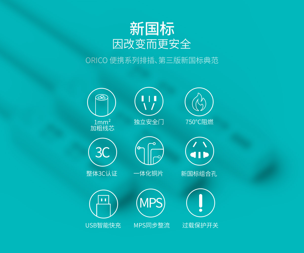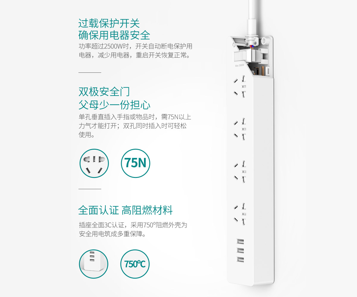 新国标便携桌面式排插,单口支持2.4A,2500W大功率