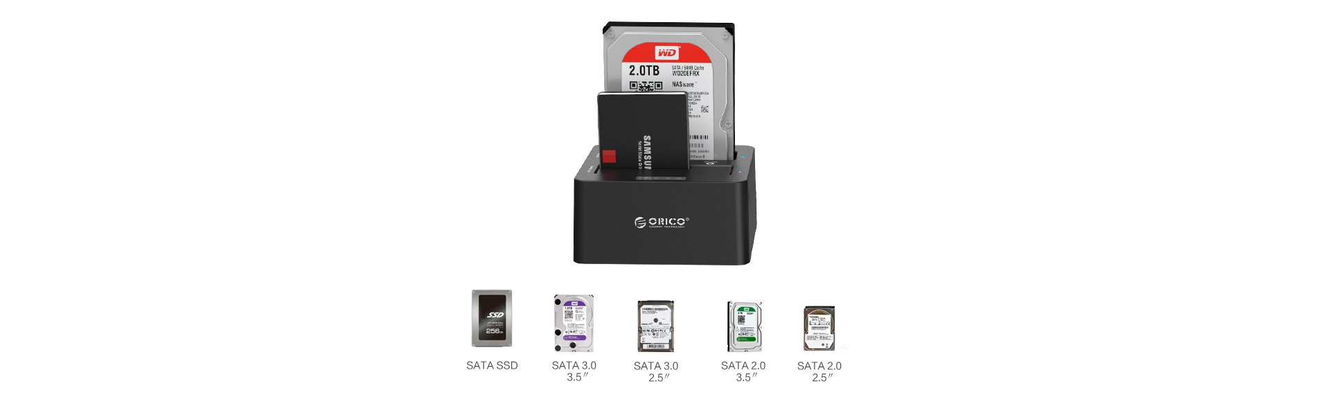 兼容市面不同尺寸的SATA串口SSD、混合硬盘、硬盘,2.5/3.5寸硬盘盒大小通吃;支持Windows/Linux/Mac等市面上主流操作系统,存储扩展一件就能搞定。