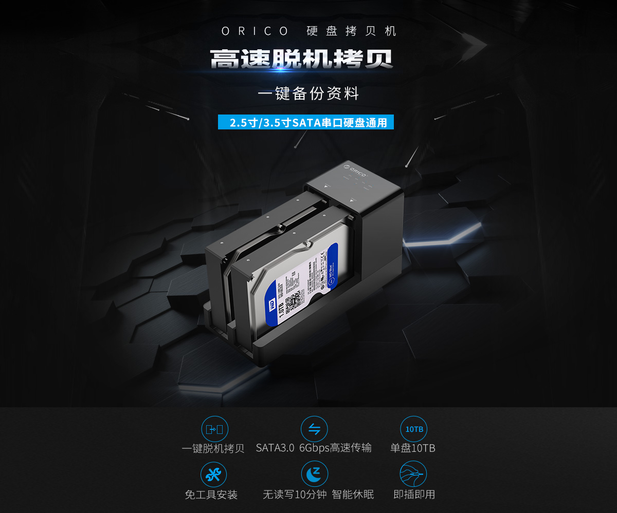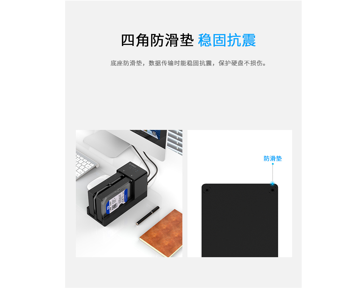 2.5/3.5英寸双盘位USB3.0裸露式硬盘底座,支持脱机拷贝