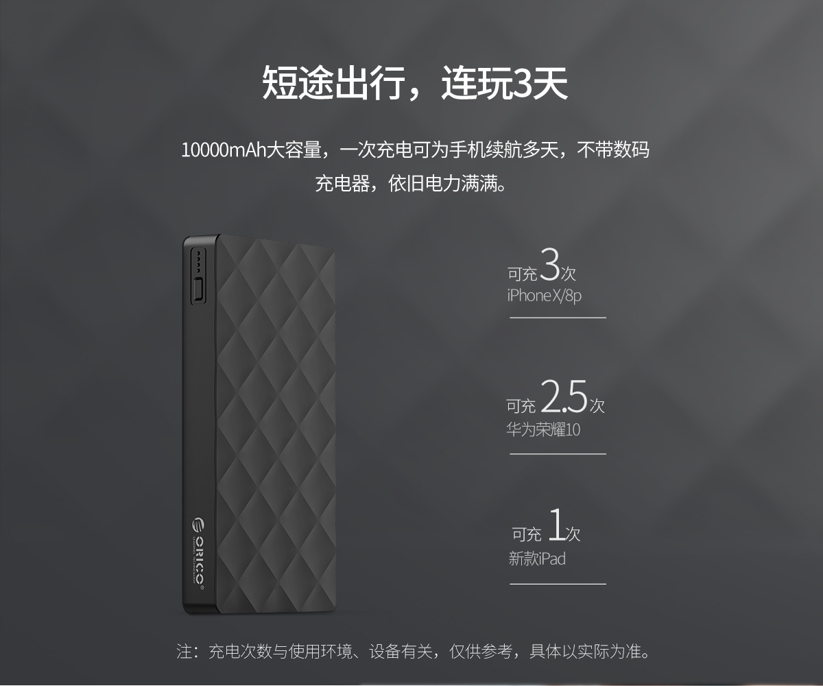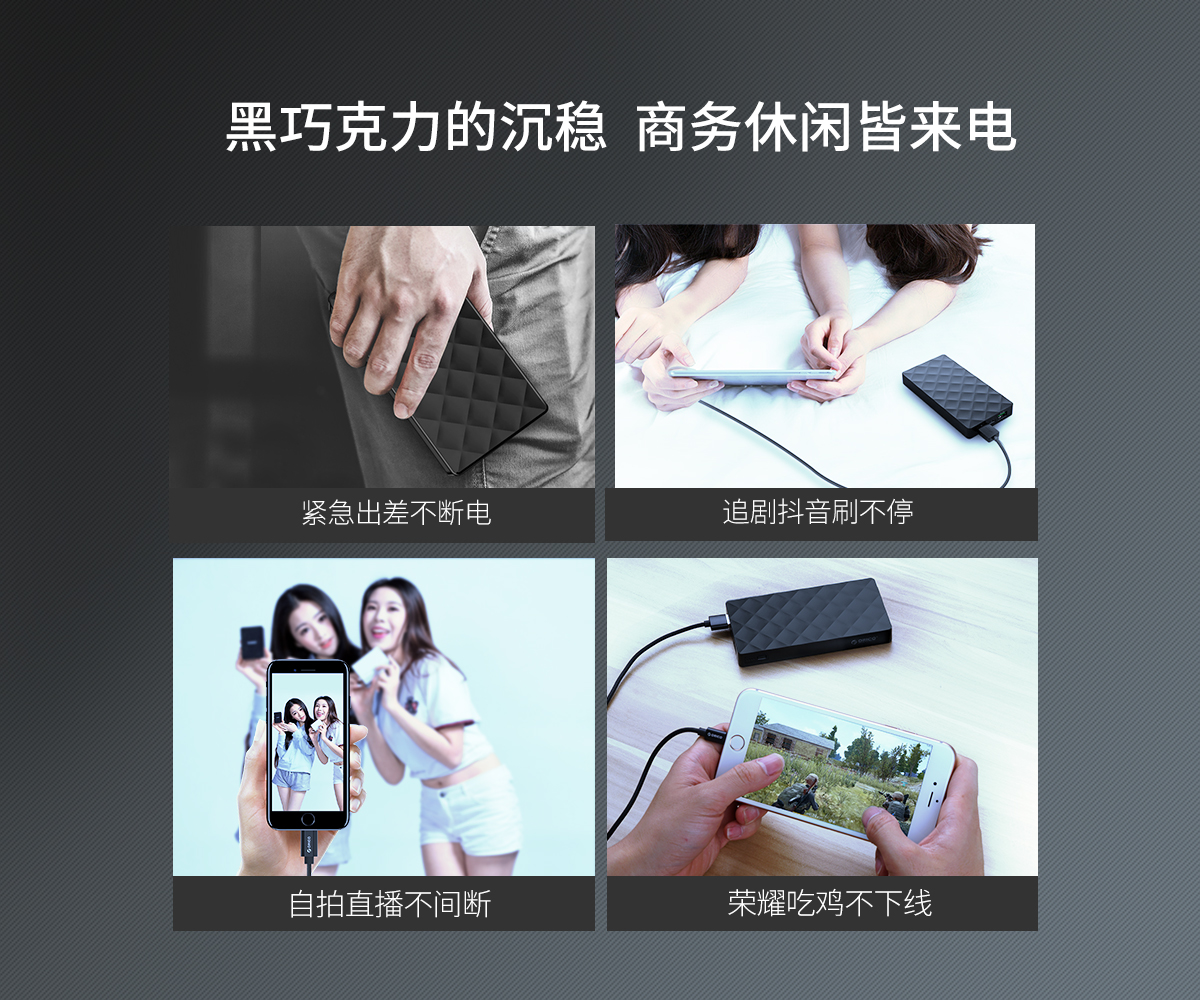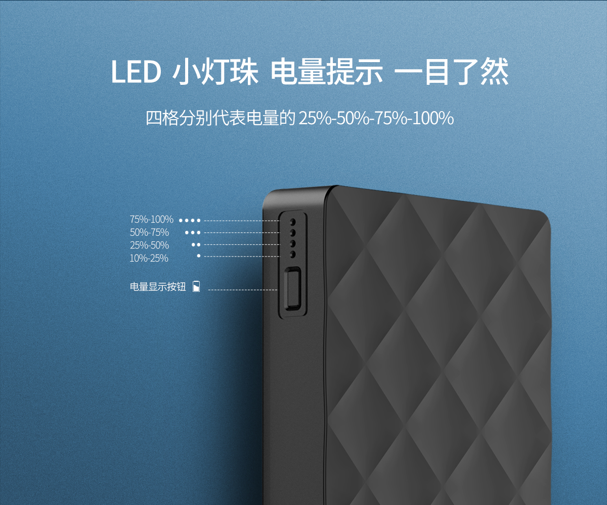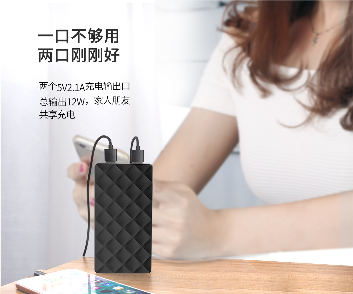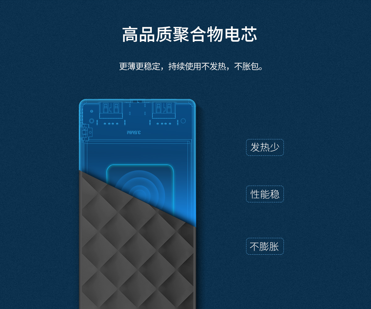 10000mAh大容量,高品质聚合物电芯,持续使用不发烫