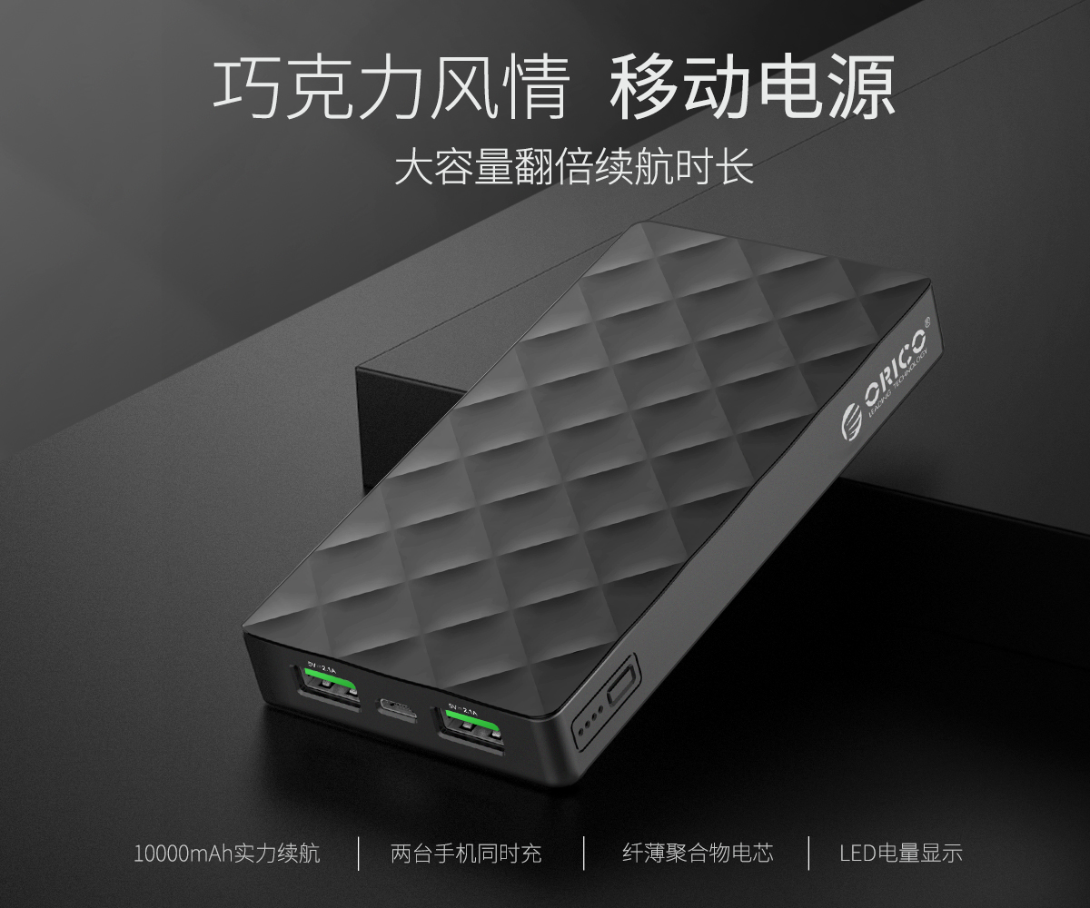 10000mAh 巧克力移动电源,双5V/2.1A输出