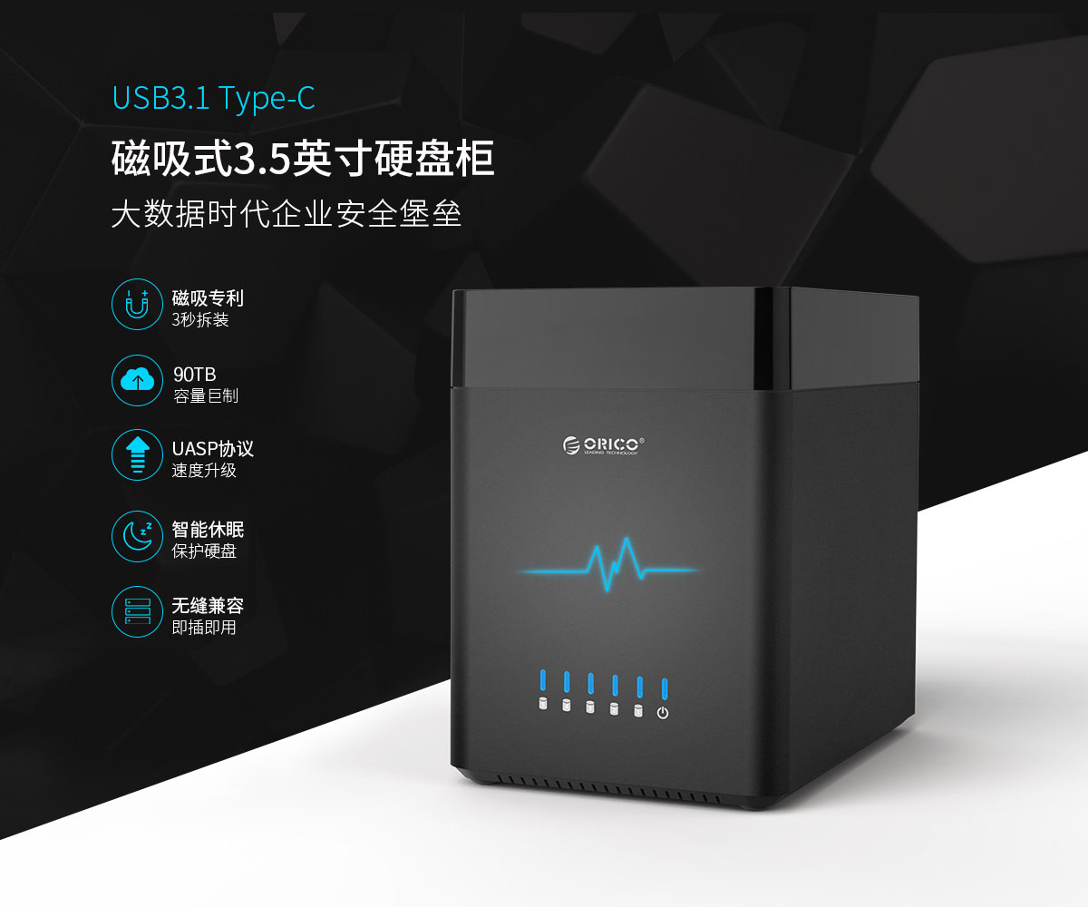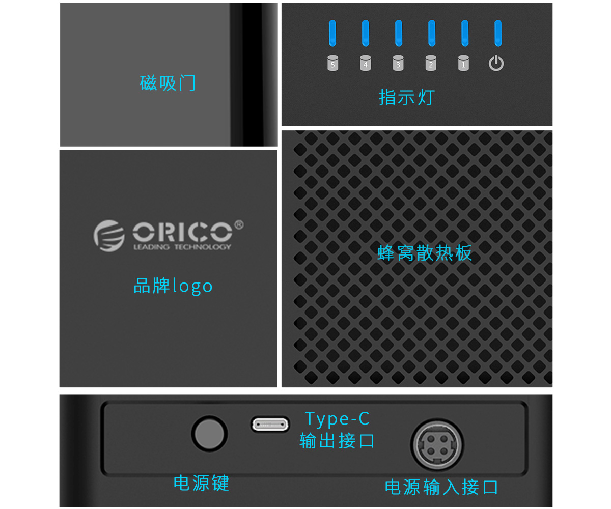 3.5英寸磁吸式五盘位Type-C存储硬盘柜