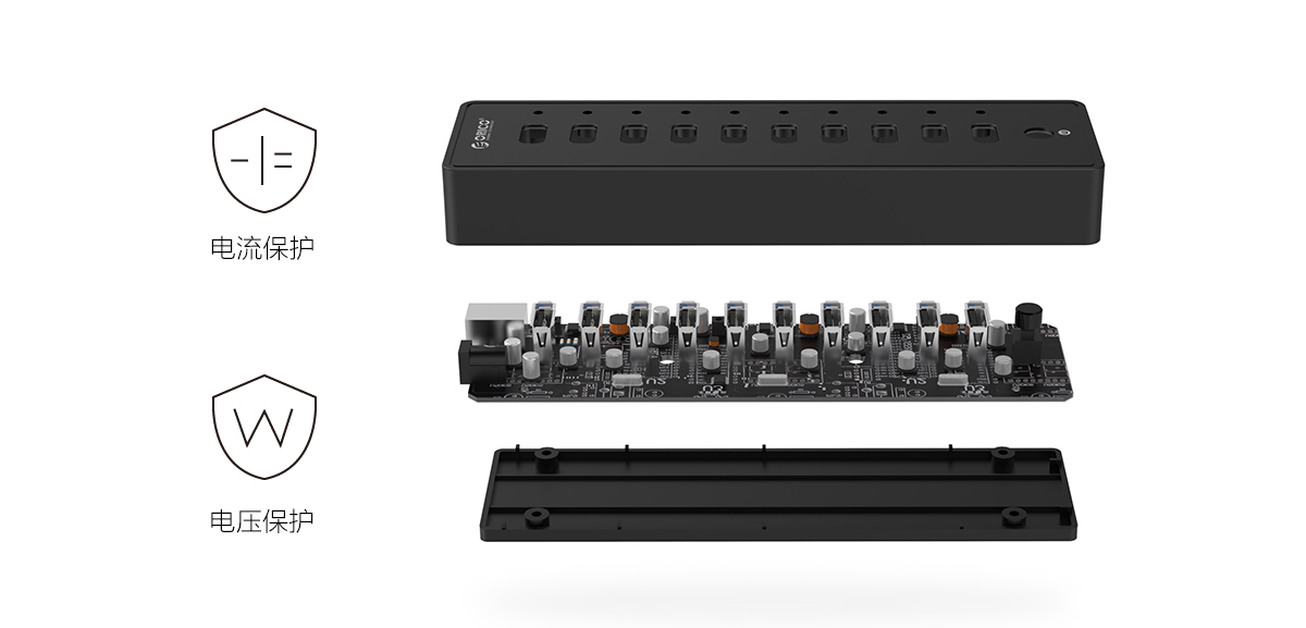 为了给更多USB设备提供高速传输条件,ORICO 推出10口高速集线器,接口布局合理,运用互不干扰,再多设备也一并满足,同时也保护了您电脑原生接口。