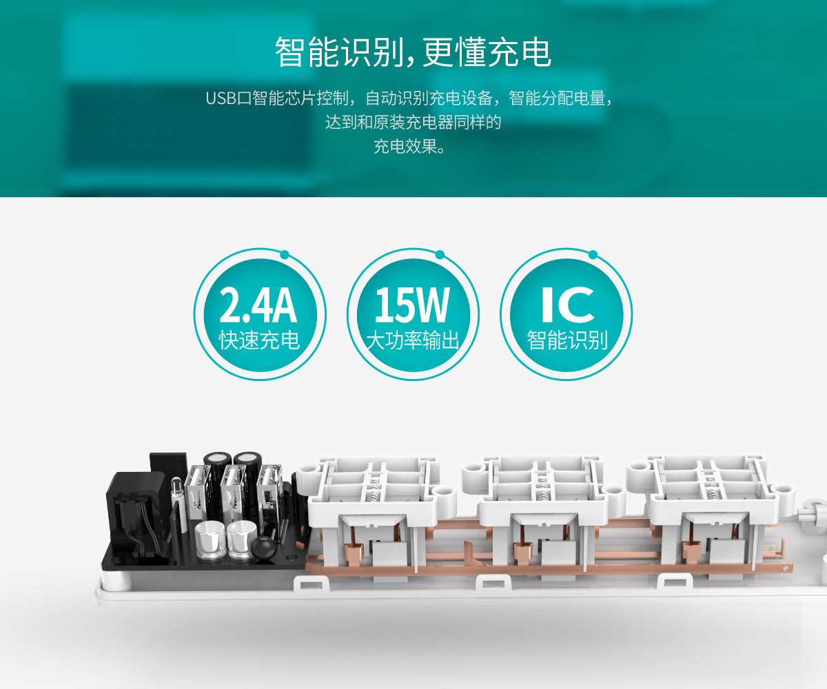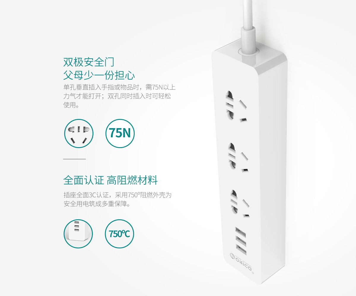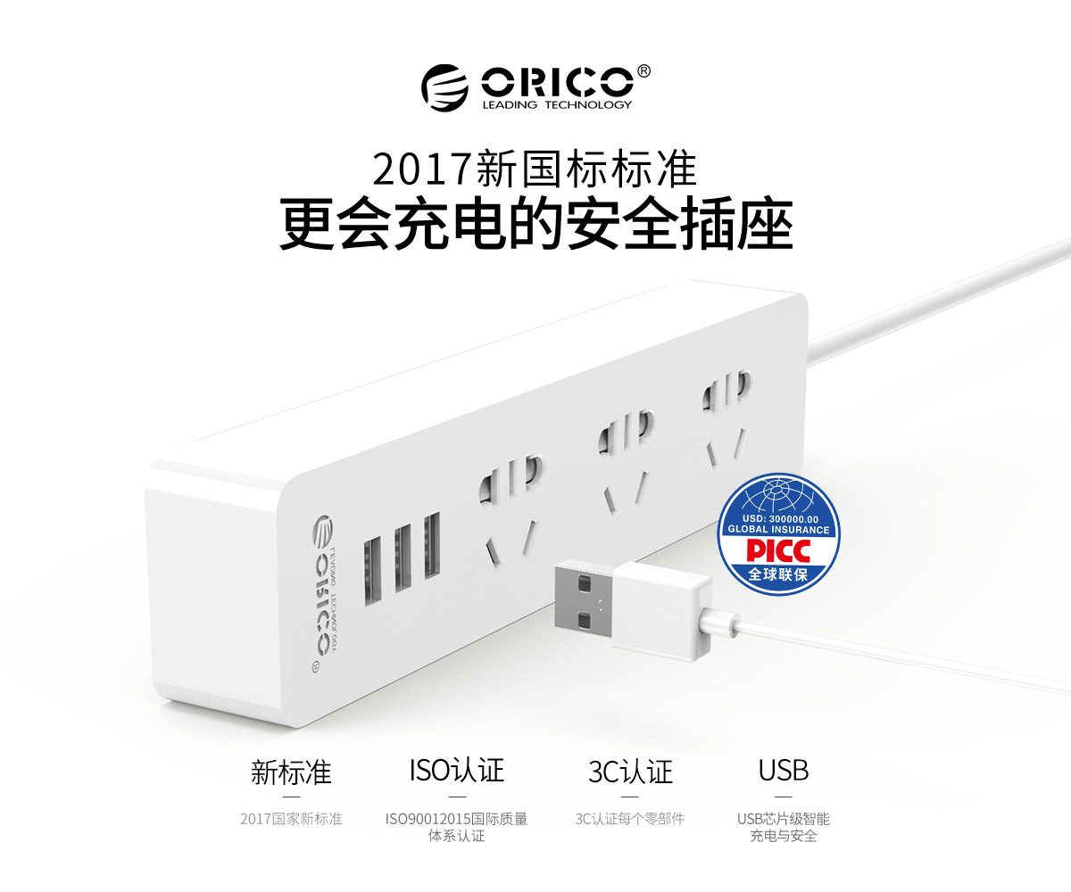 新国标3AC口3usb便携桌面式排插