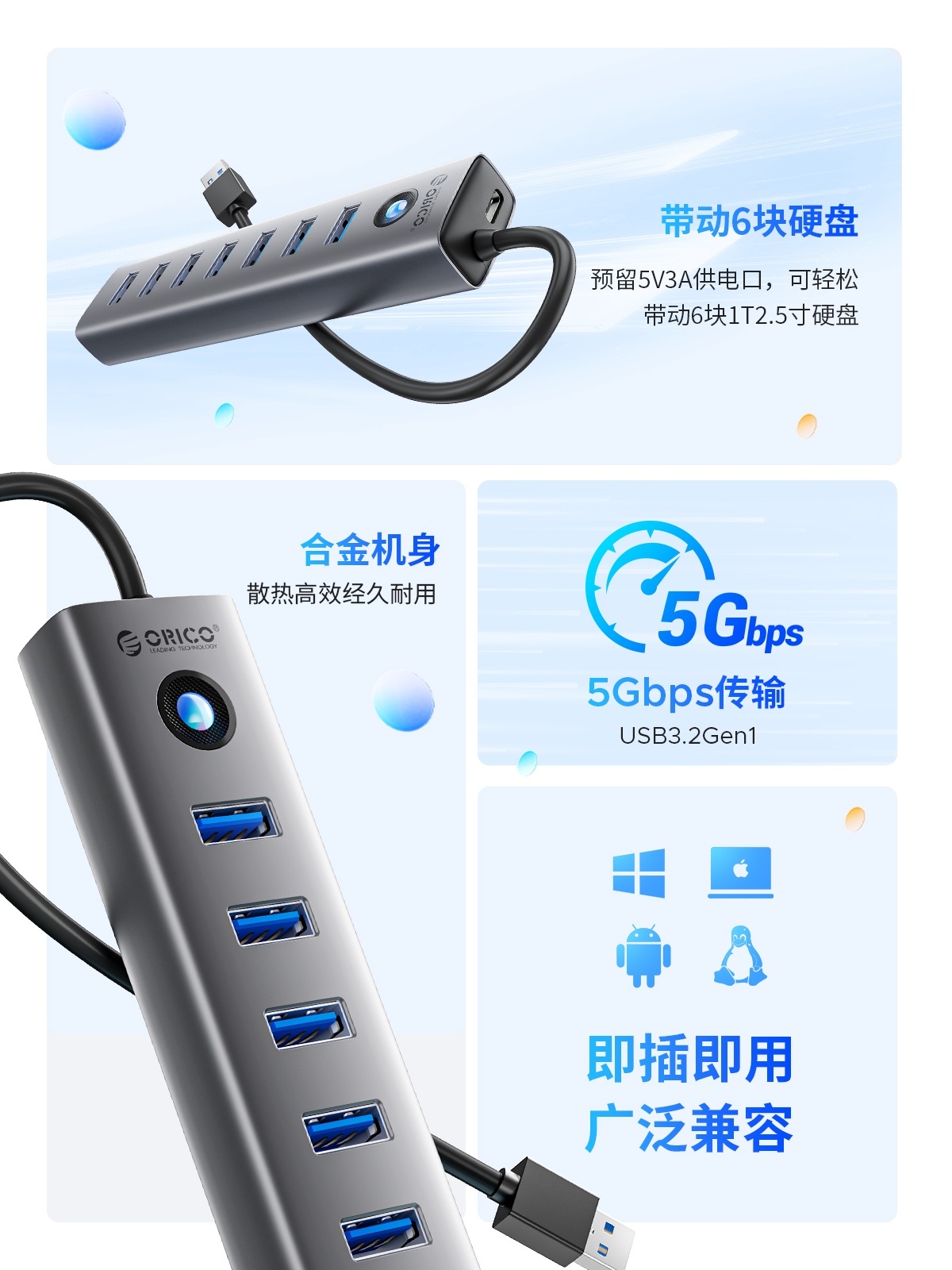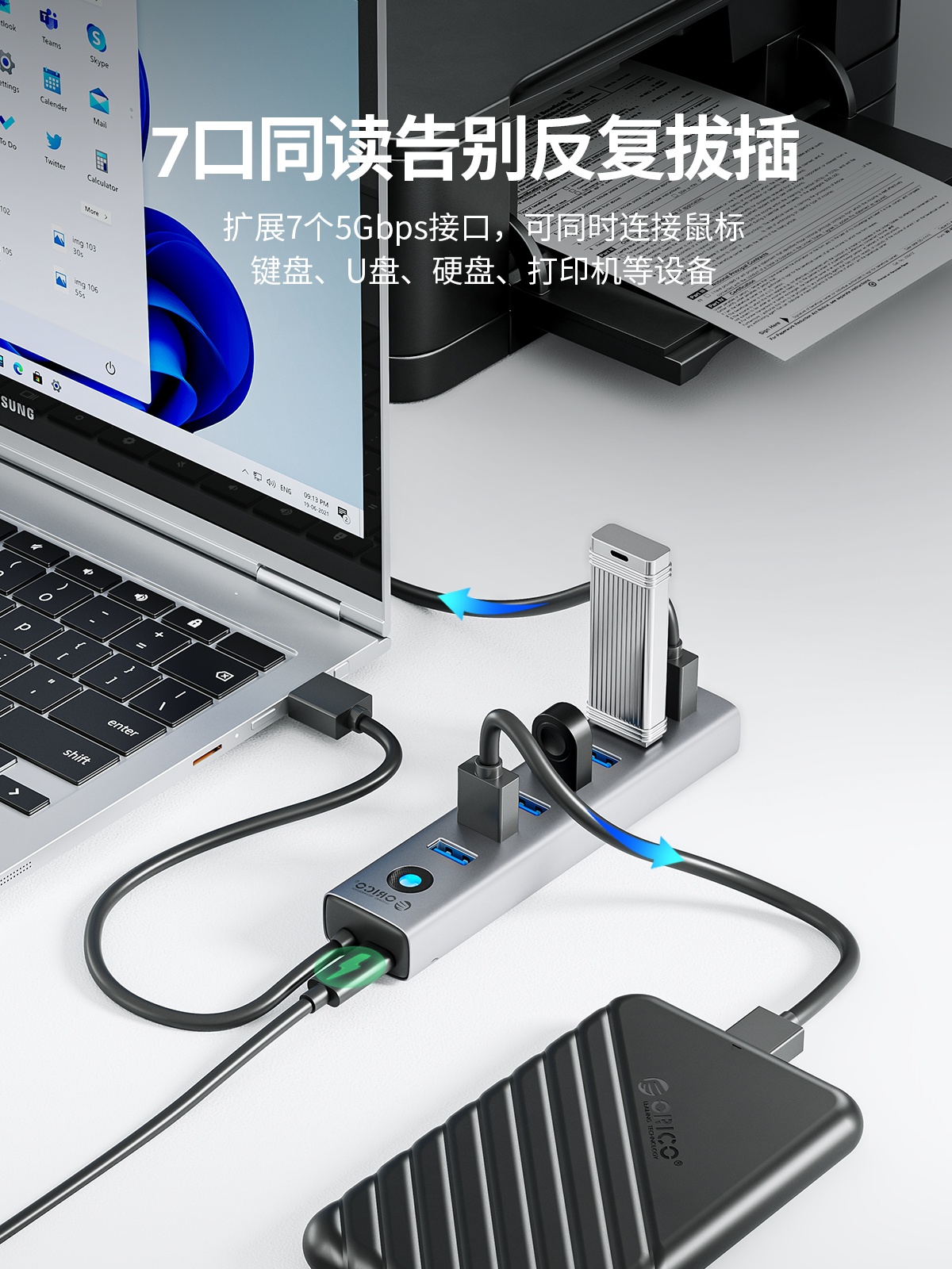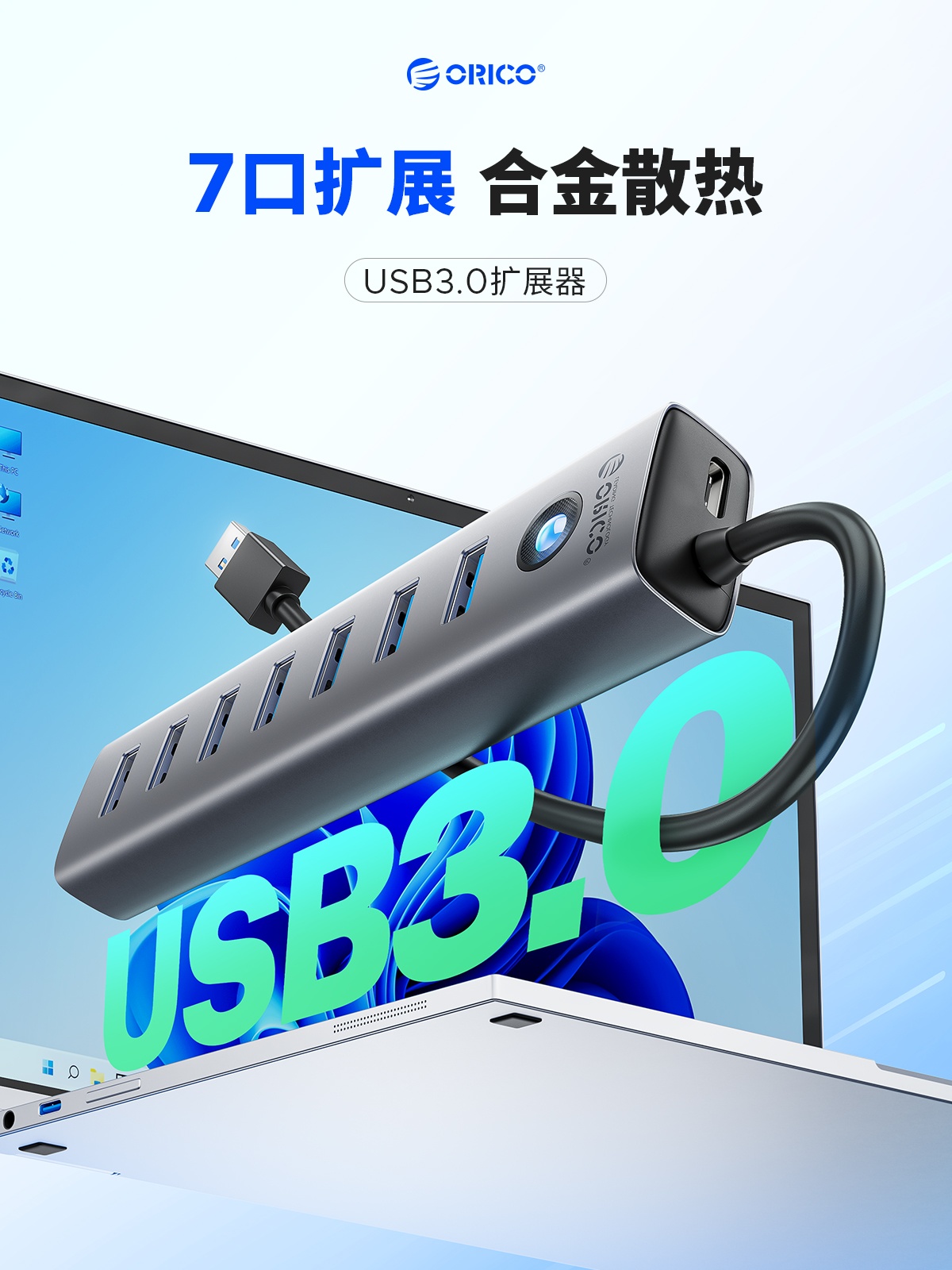 铝合金7口USB3.0集线器HUB
