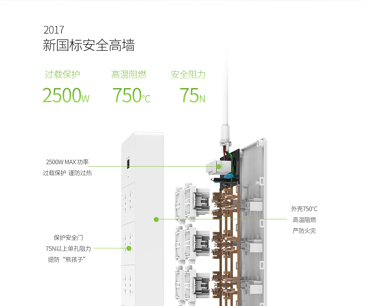 新国标商企办公总控6AC口5USB口智能排插