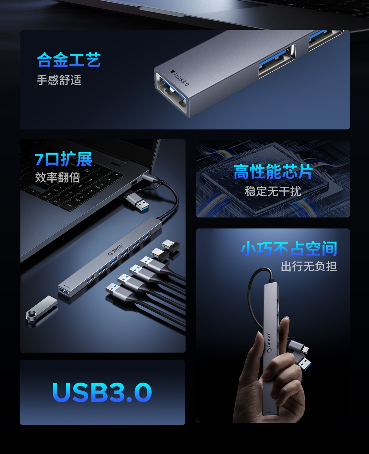 铝合金迷你USB3.0HUB
