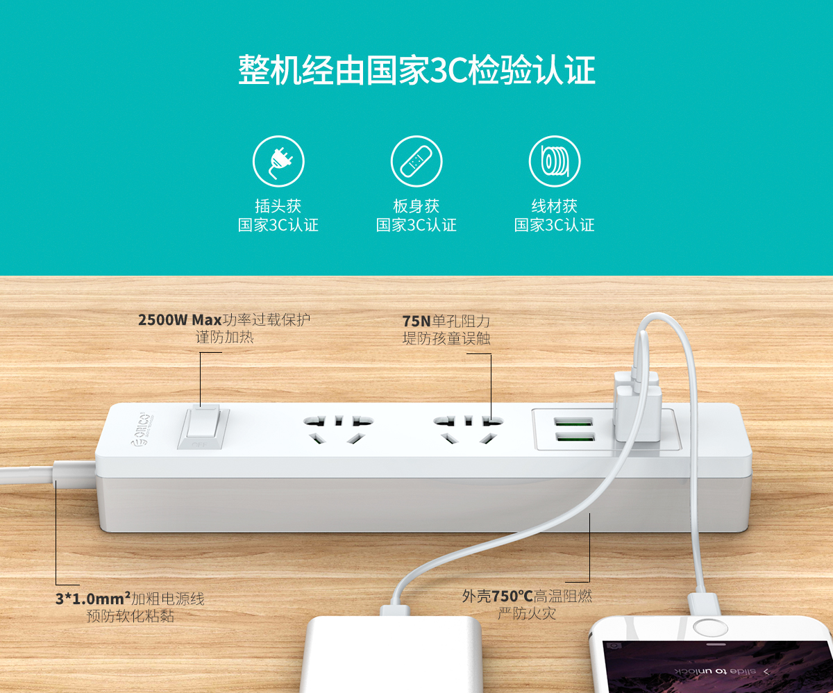 新国标2AC口4usb口便携桌面式排插
