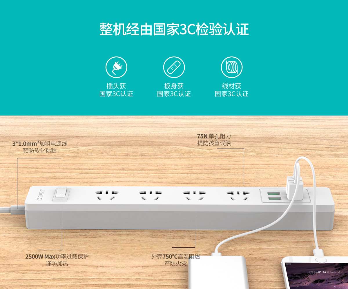 智能总控 环保耐高温,新国标,单口智能识别5V2.4A,总输出5V4A 20W