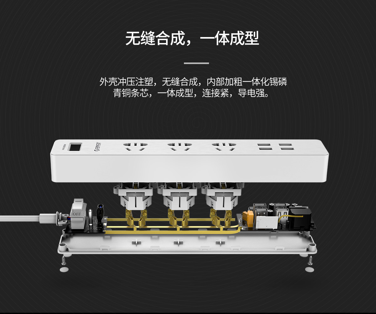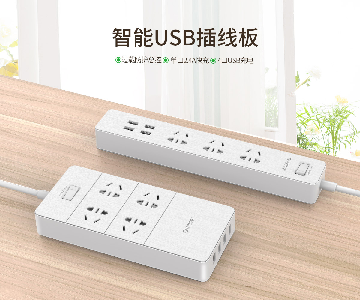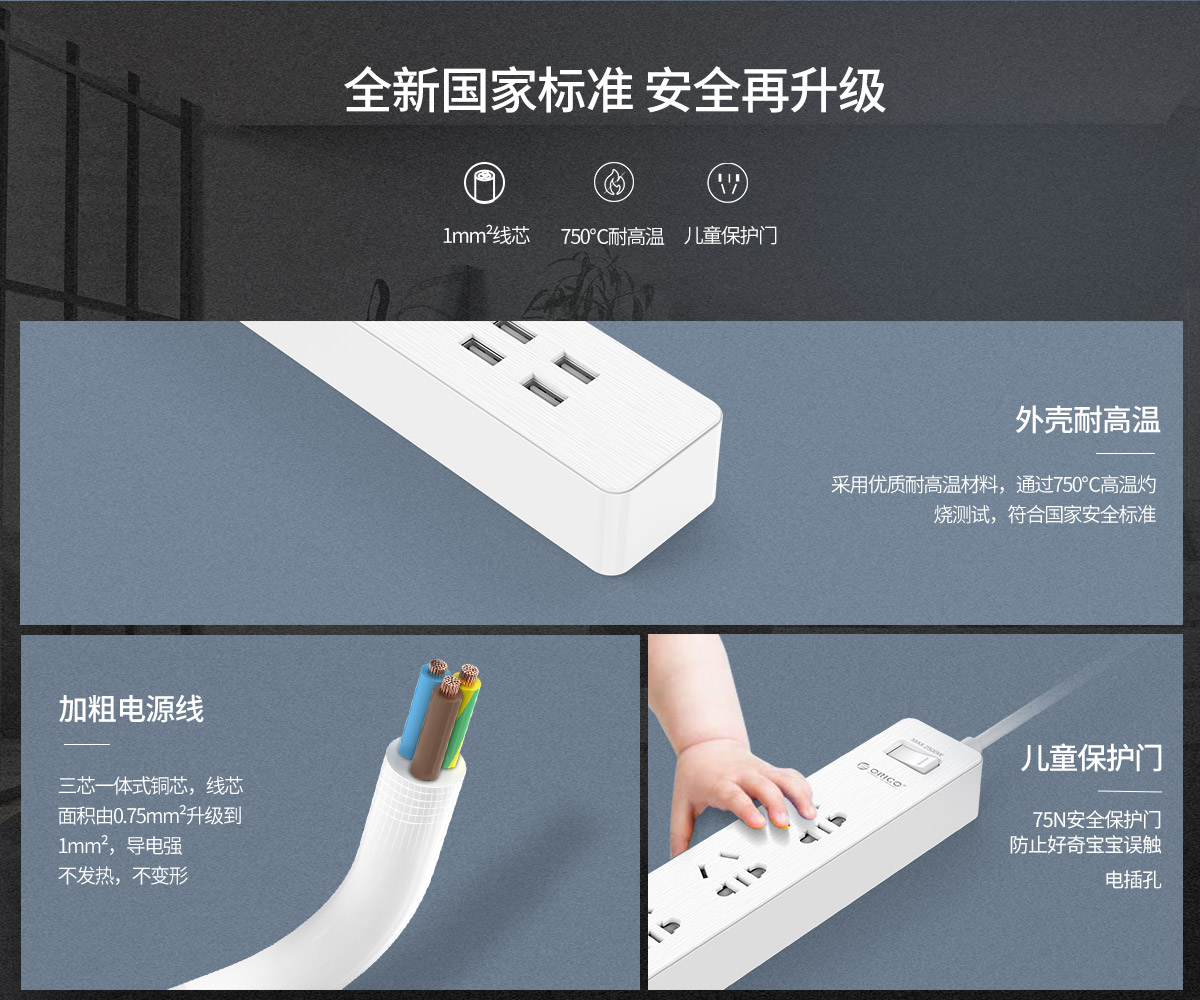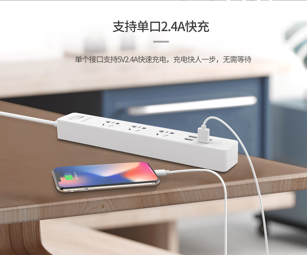 木纹外观,新国标便携桌面式排插,办公智能排插,高温环保材料,底座硅胶防滑