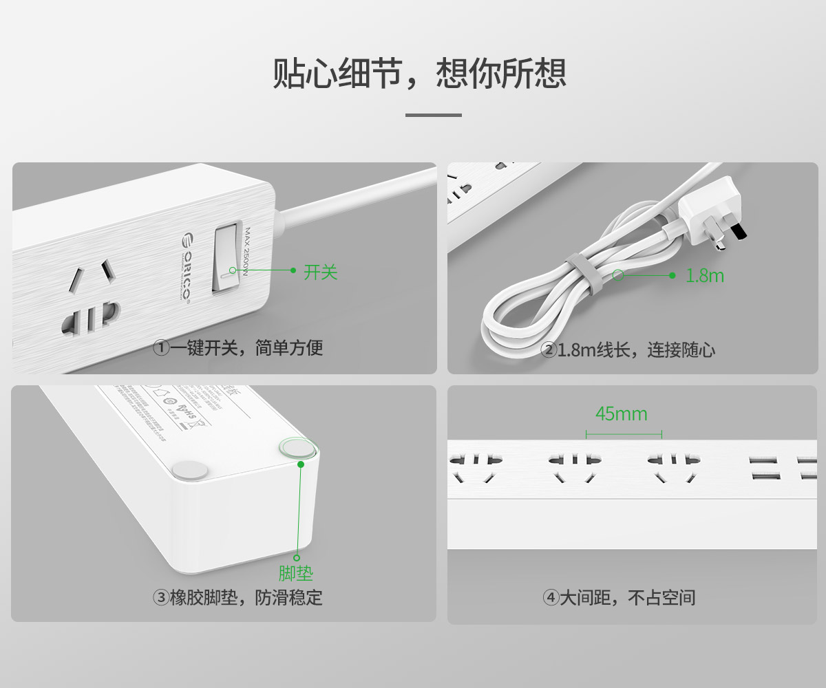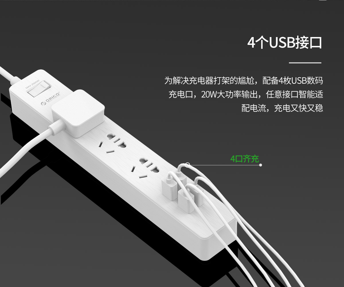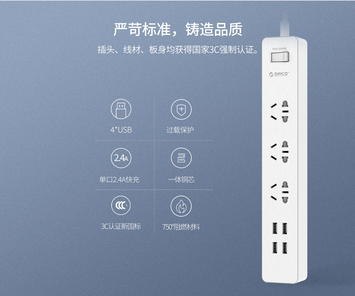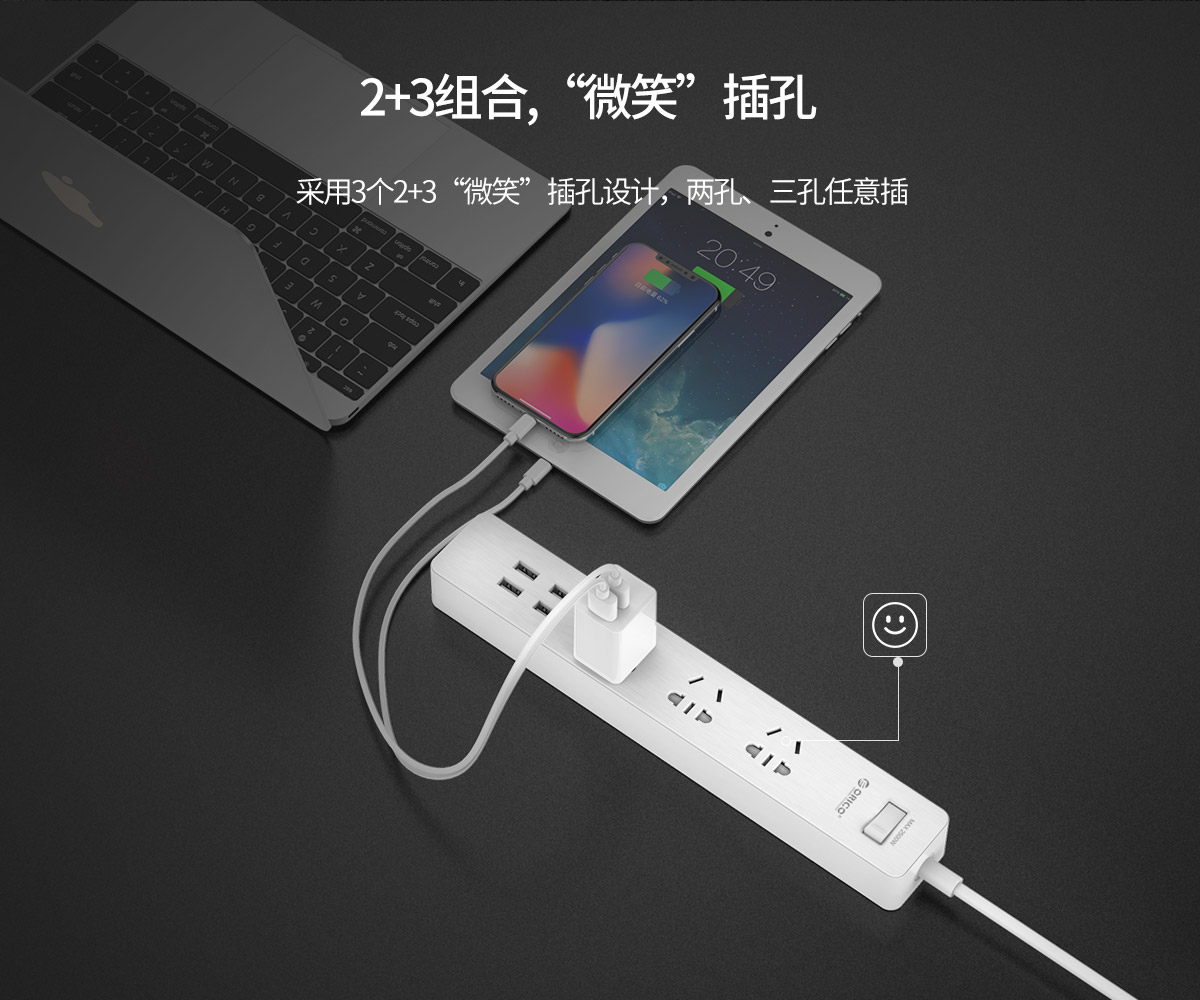 木纹外观,新国标便携桌面式排插,办公智能排插,高温环保材料,底座硅胶防滑