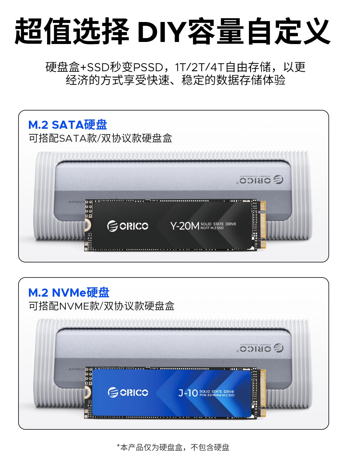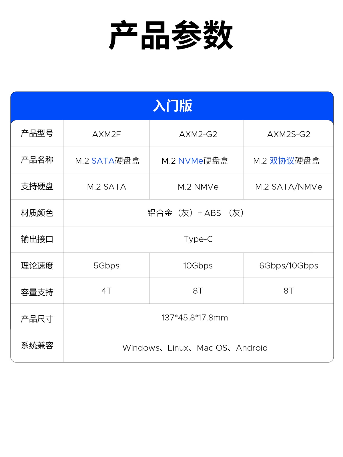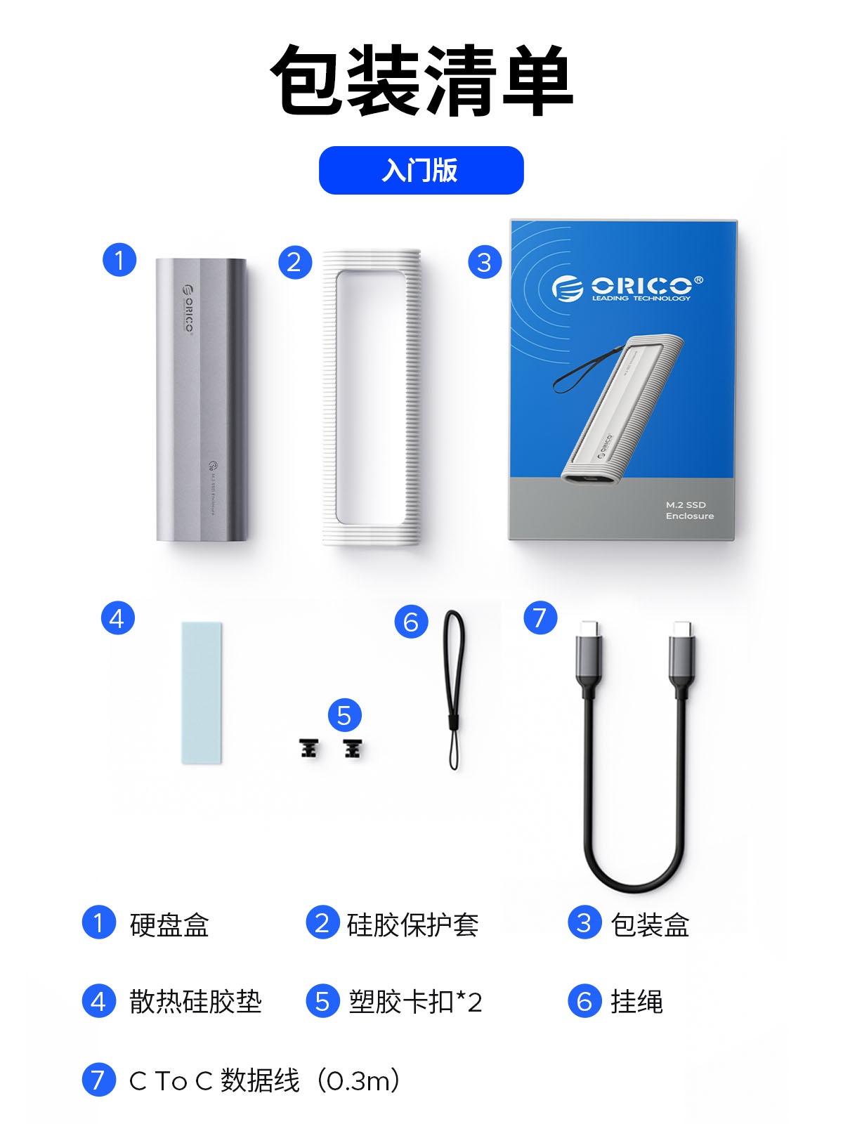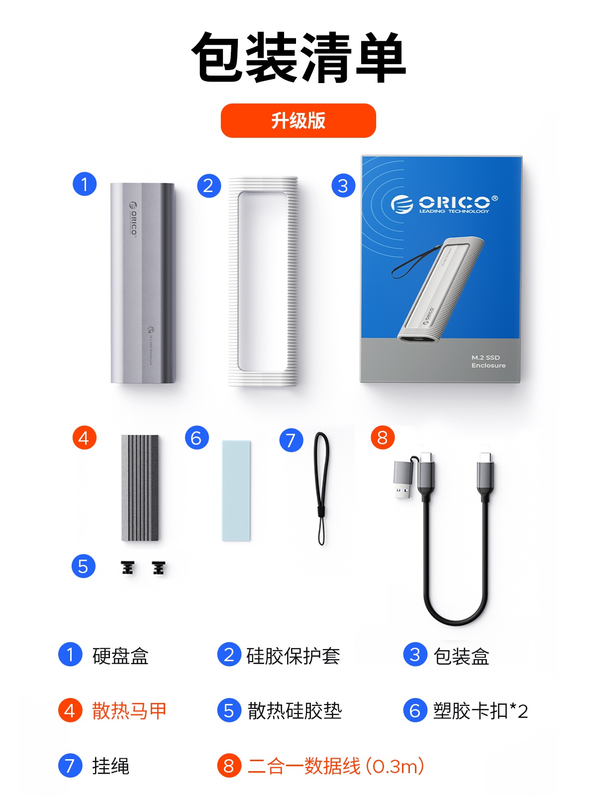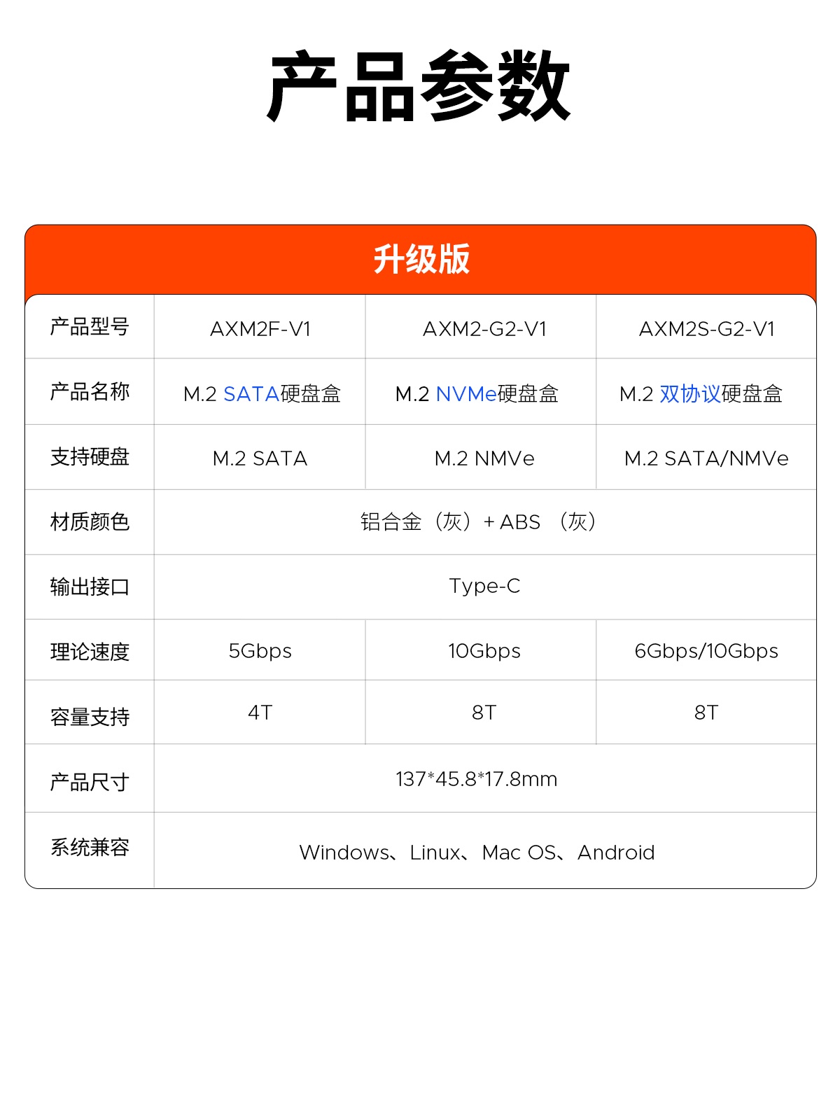 铝合金 M.2 NGFF硬盘盒(二合一线)