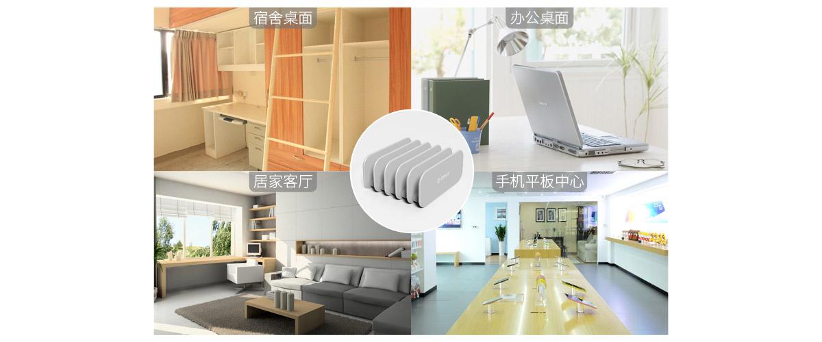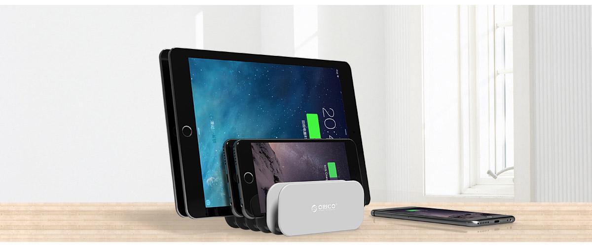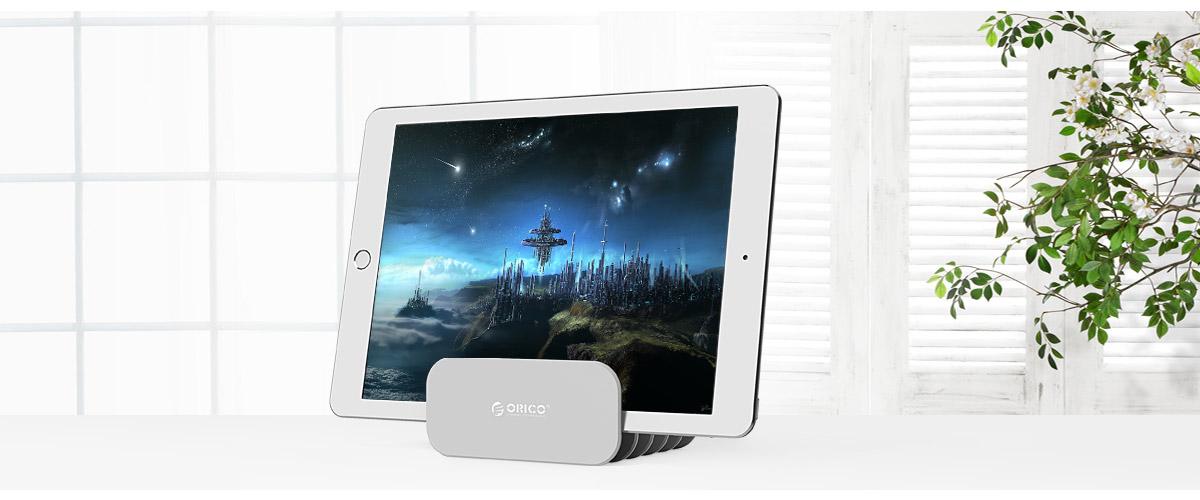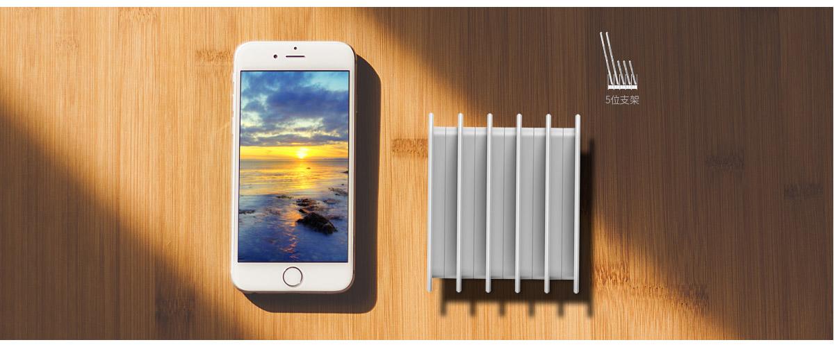 每一个数码设备均可放置在支架上充电,无需占据过多的桌面面积,简单方便。任何手机、平板均可轻松放置,让你的桌面变得整洁简单