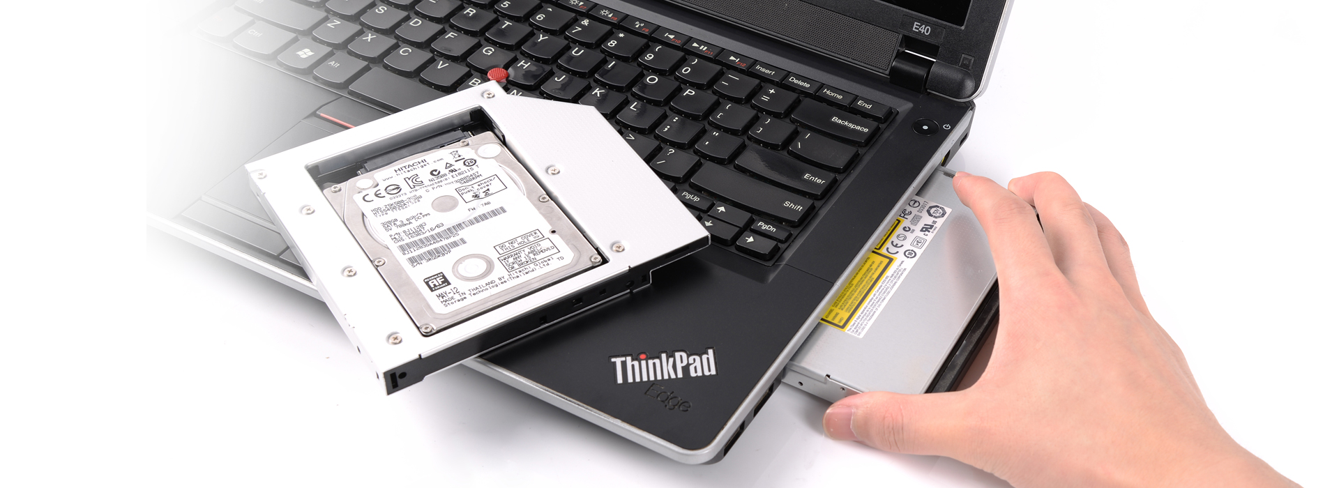 由于笔记本硬盘的特殊性和更高的制作工艺,高速与容量一直不能并肩而行,为此我们为笔记本电脑研发了这款选件——第二块硬盘适配器(俗称光驱位硬盘盒或是光驱位硬盘托架),内置于带光驱的大部分机型中,实现2块硬盘同时使用,高容量与高速兼得;在SSD越来越普及的时代,光驱位硬盘架为您带来了既有高速运行的系统,又能大容量存储的解决方案。