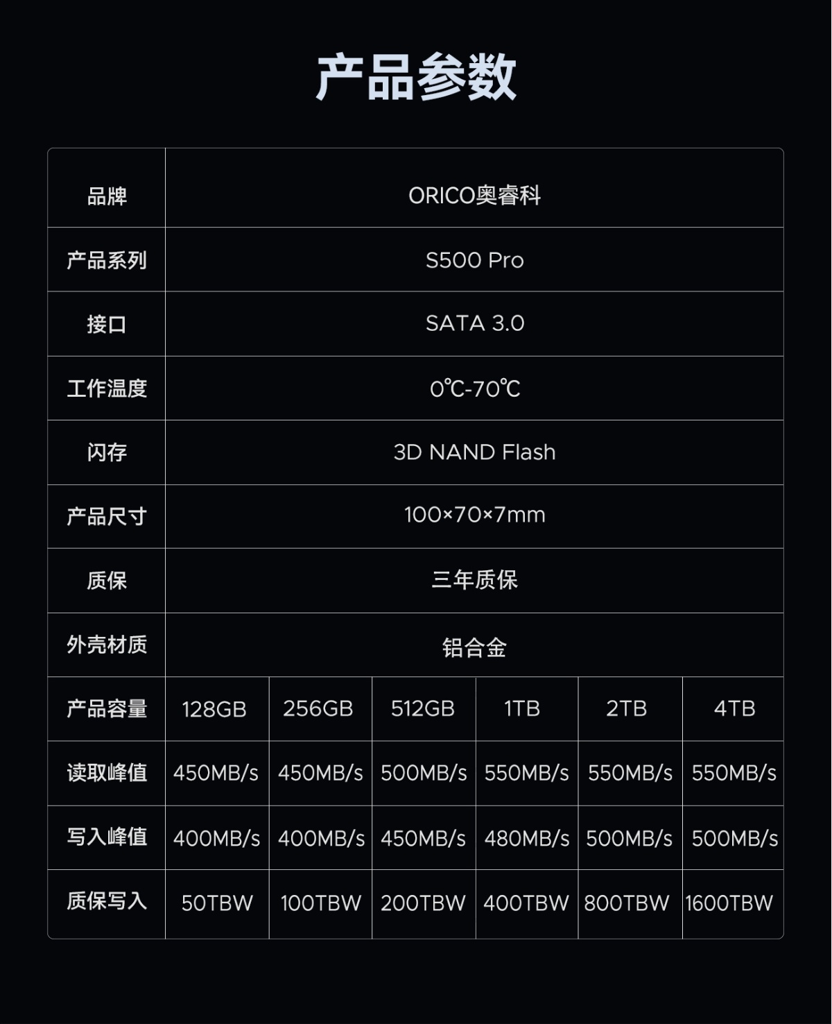 S500 Pro 2.5英寸 SATA3.0 SSD固态硬盘