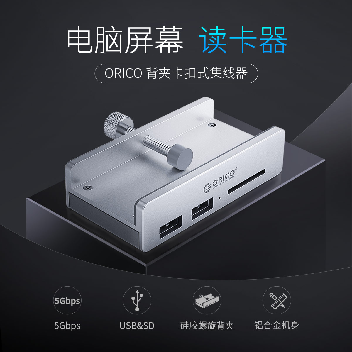 铝合金2口USB3.0/SD卡槽集线器带,夹扣设计