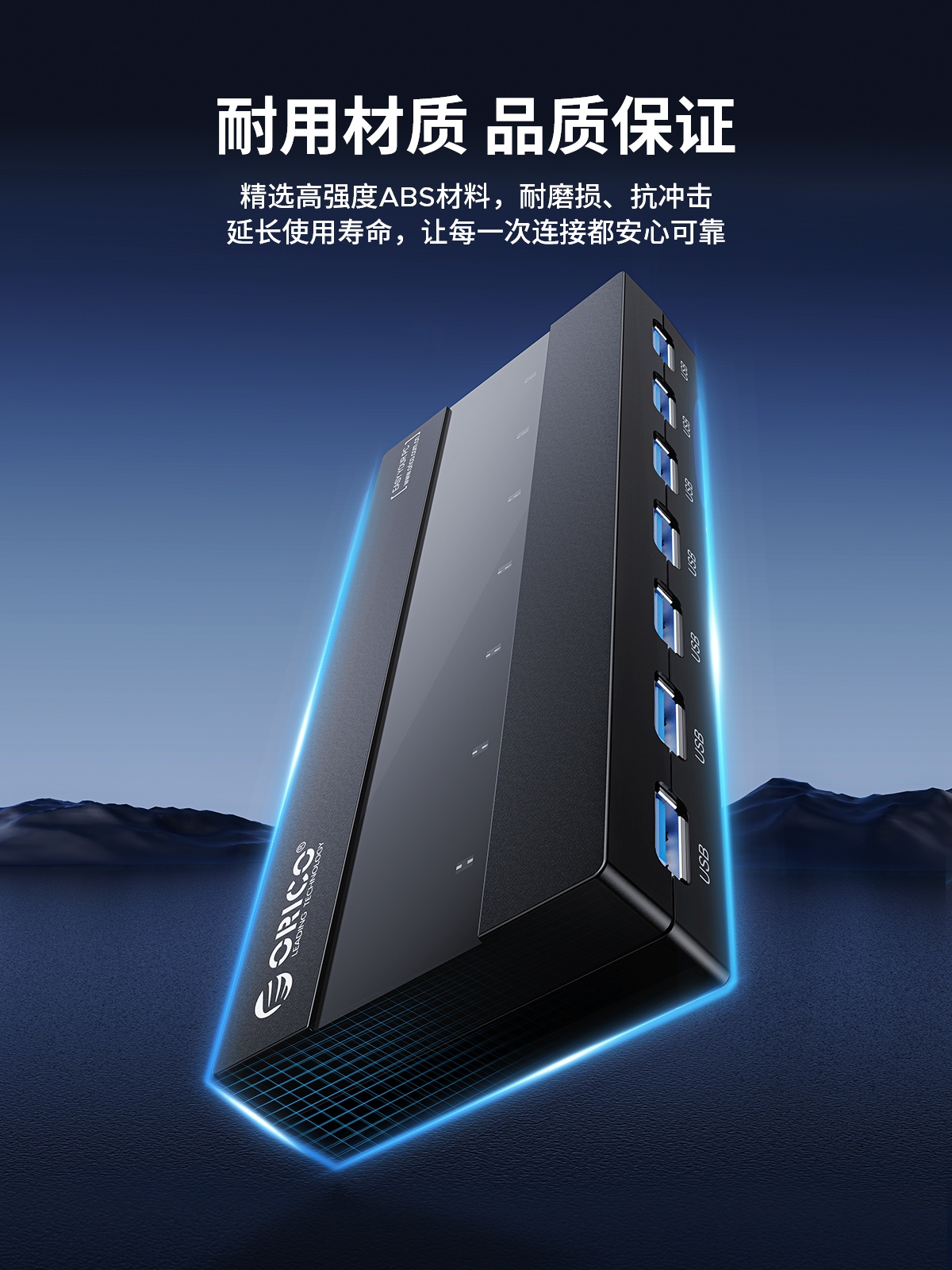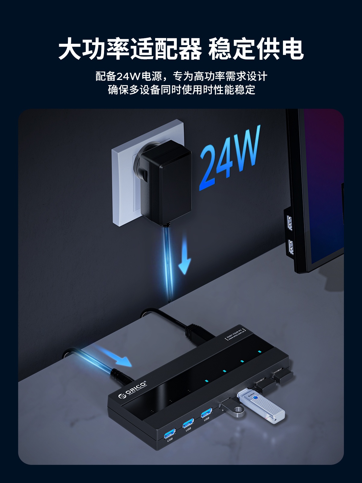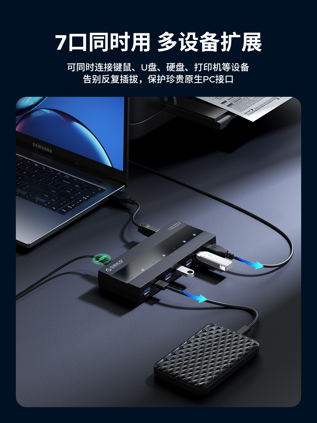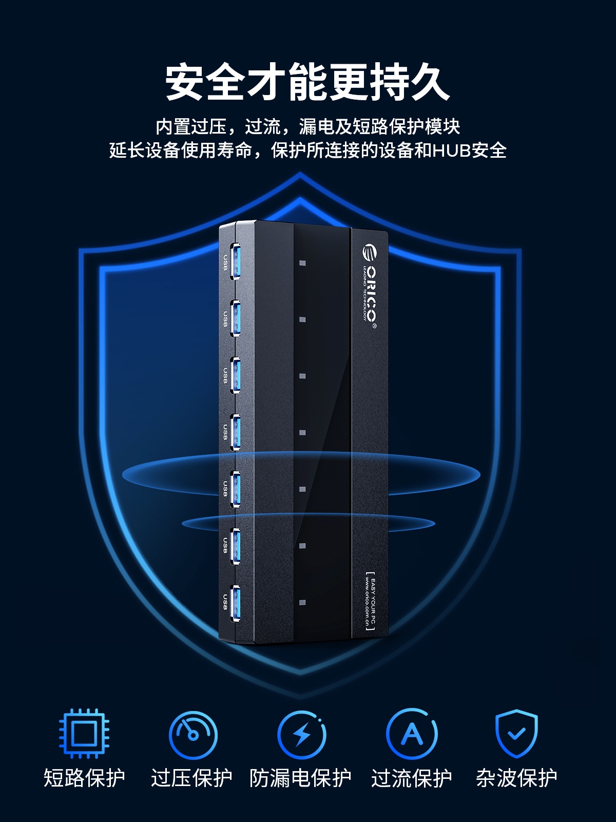 有源多口集线器 LED指示灯 VL812芯片方案 分离式设计 过载保护