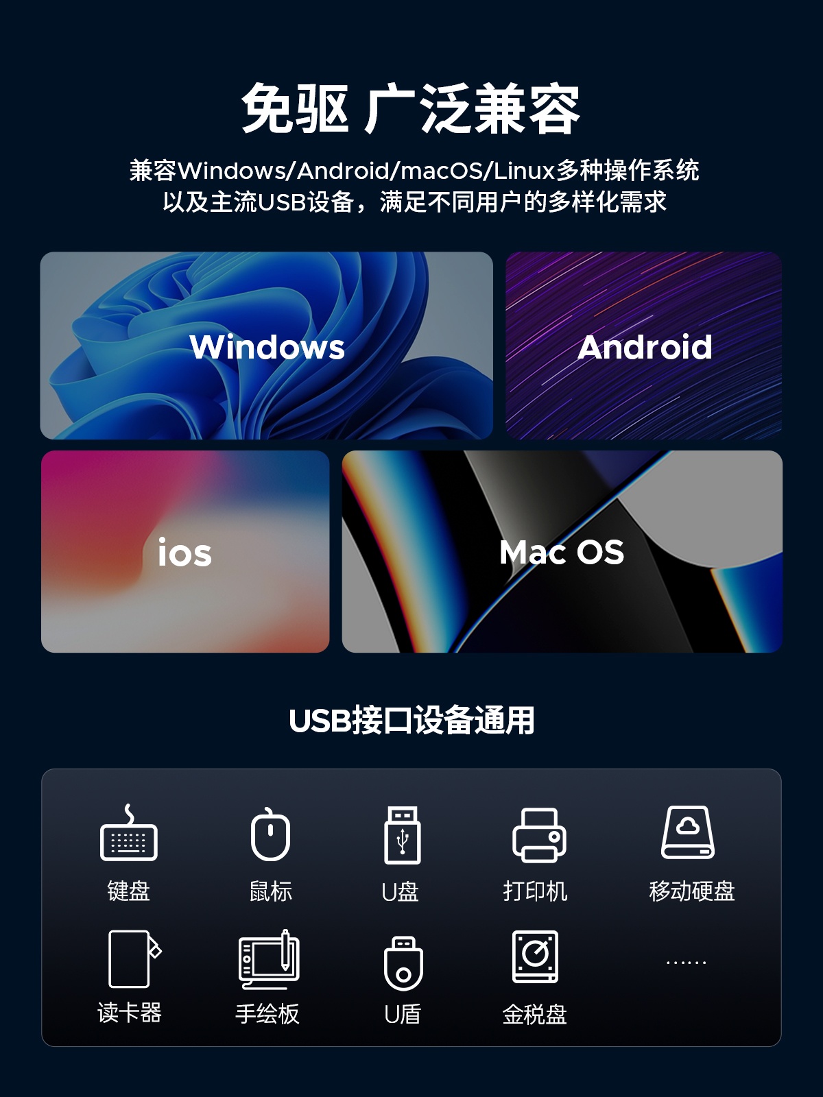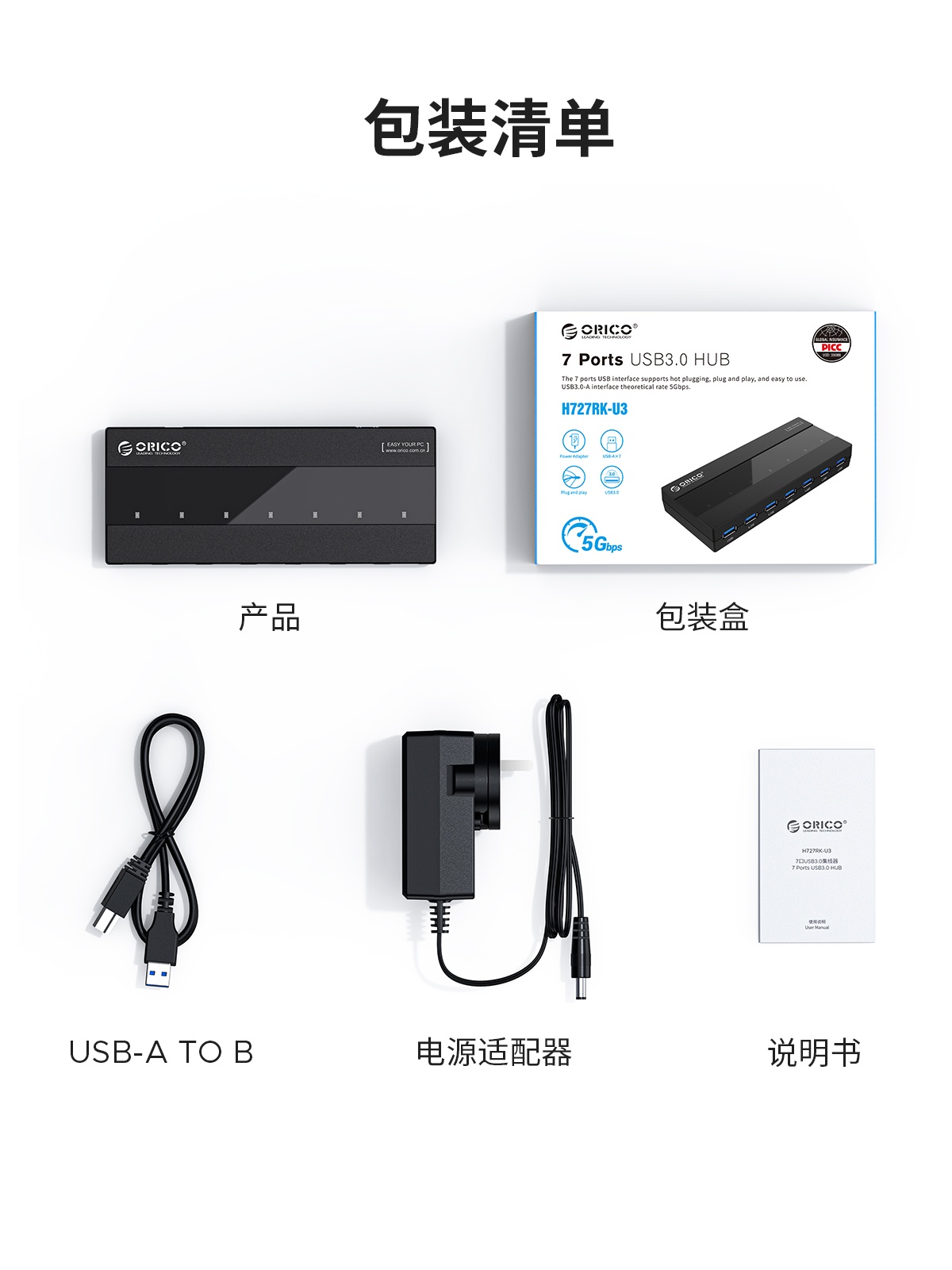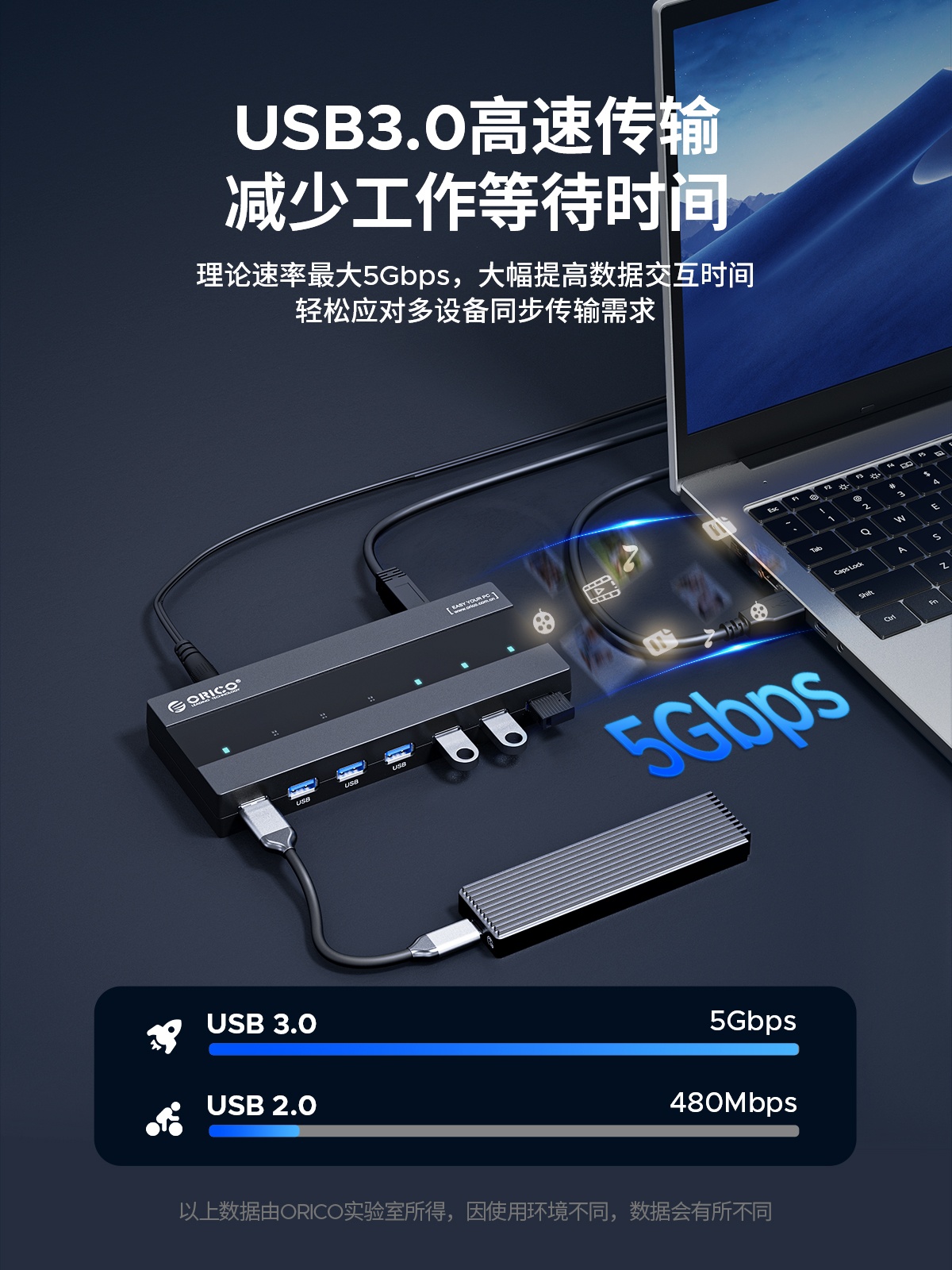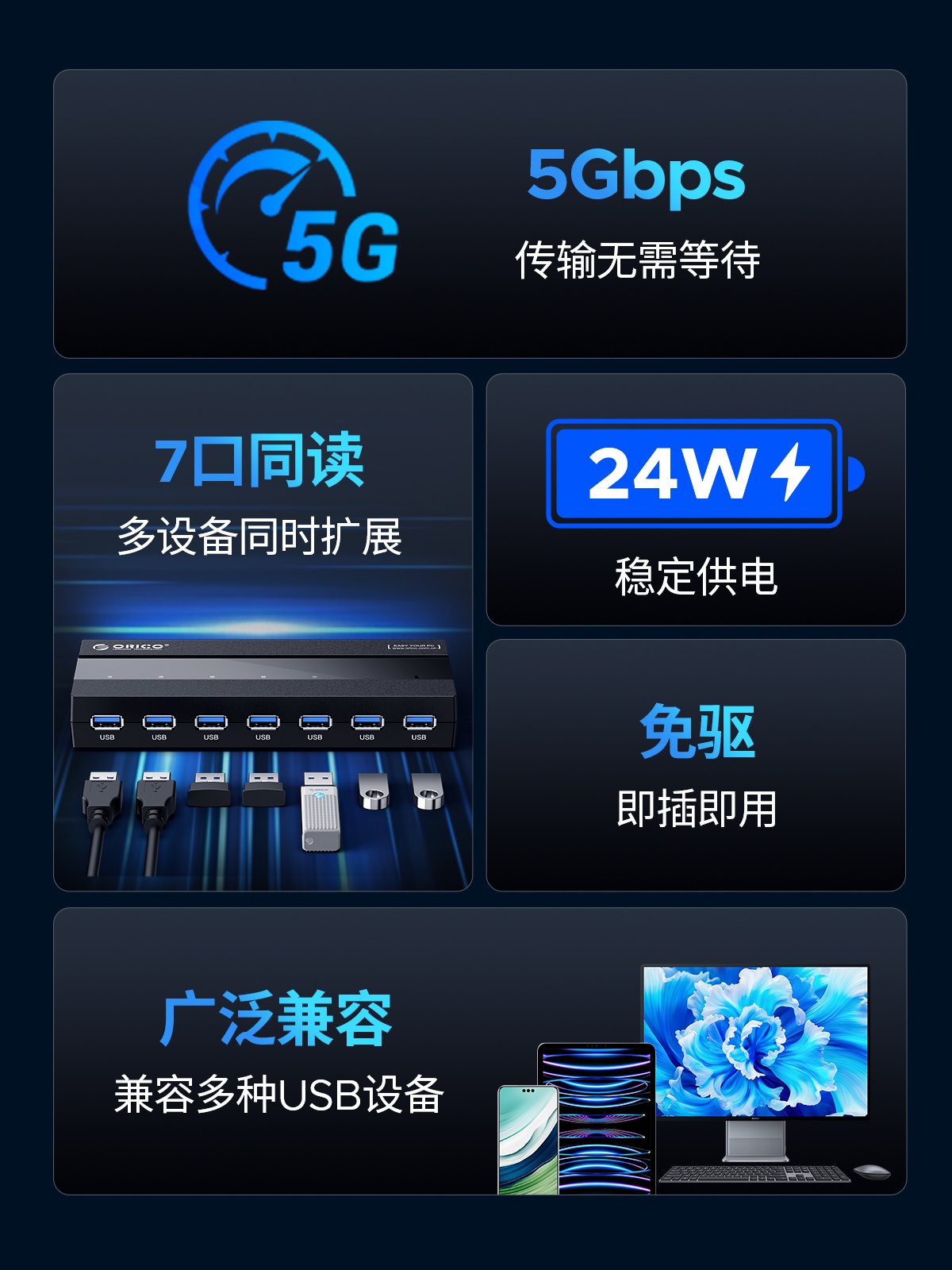 有源多口集线器 LED指示灯 VL812芯片方案 分离式设计 过载保护
