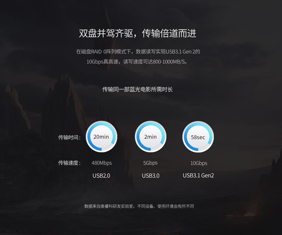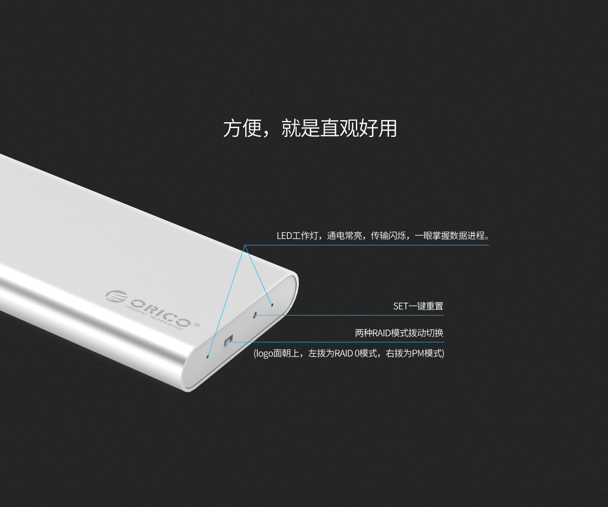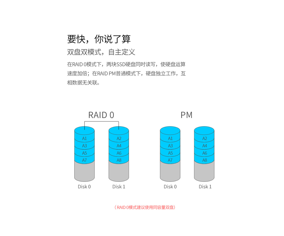 双盘位双RAID模式,raid 0模式下,可实现高速读写,小巧便携,Type-C接口