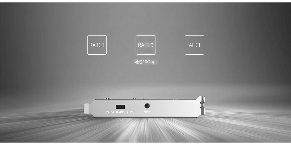 支持RAID 0/RAID 1/ AHCI三种模式,组建RAID 0模式,支持传输速度可达10GBPS