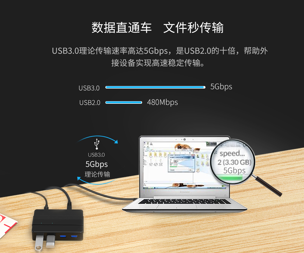 高速集线器,5Gbps传输,1M分离式数据线,双模式供电,系统支持