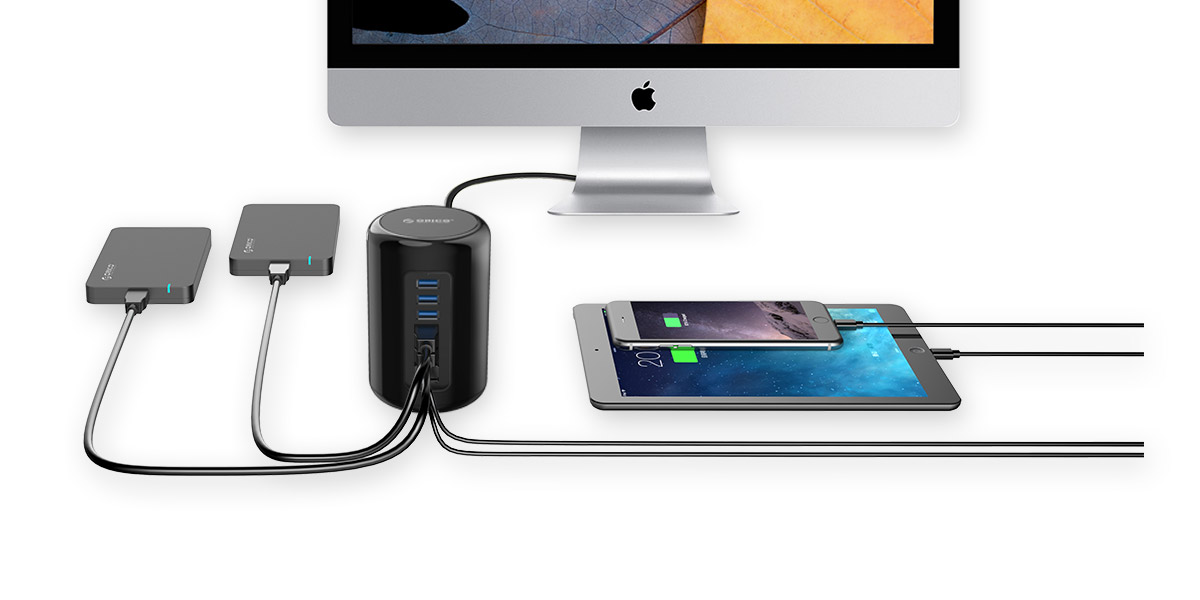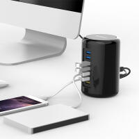 独特的圆柱型一体化设计再加上沉稳的漆黑主色,无意散发出一股简约与稳重相结合的气息。与苹果产品所追求的简约时尚理念产生艺术性的碰撞。如此一款产品,相信对于部分文艺范的用户而言,在视觉讨好程度上来说绝不亚于一些精美的桌面摆设品,何况ORICO RH7-U3还是个功能实用的数码设备。