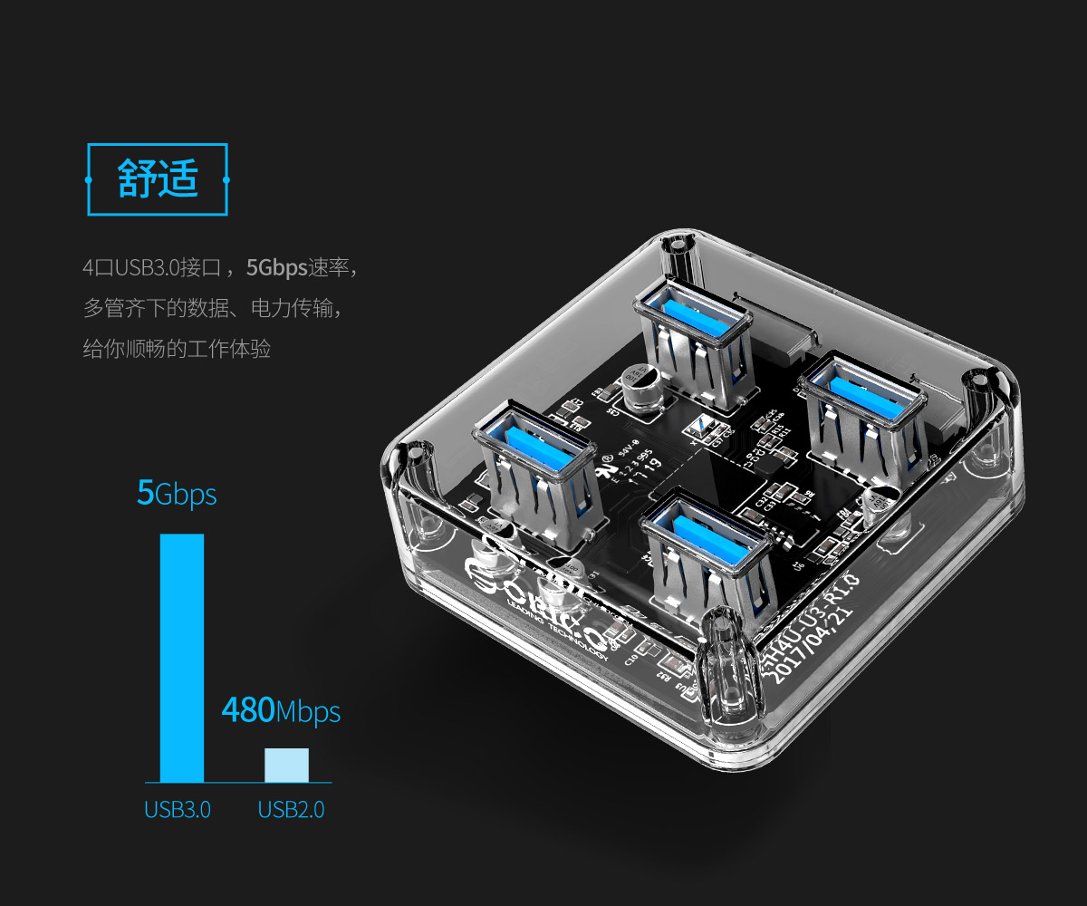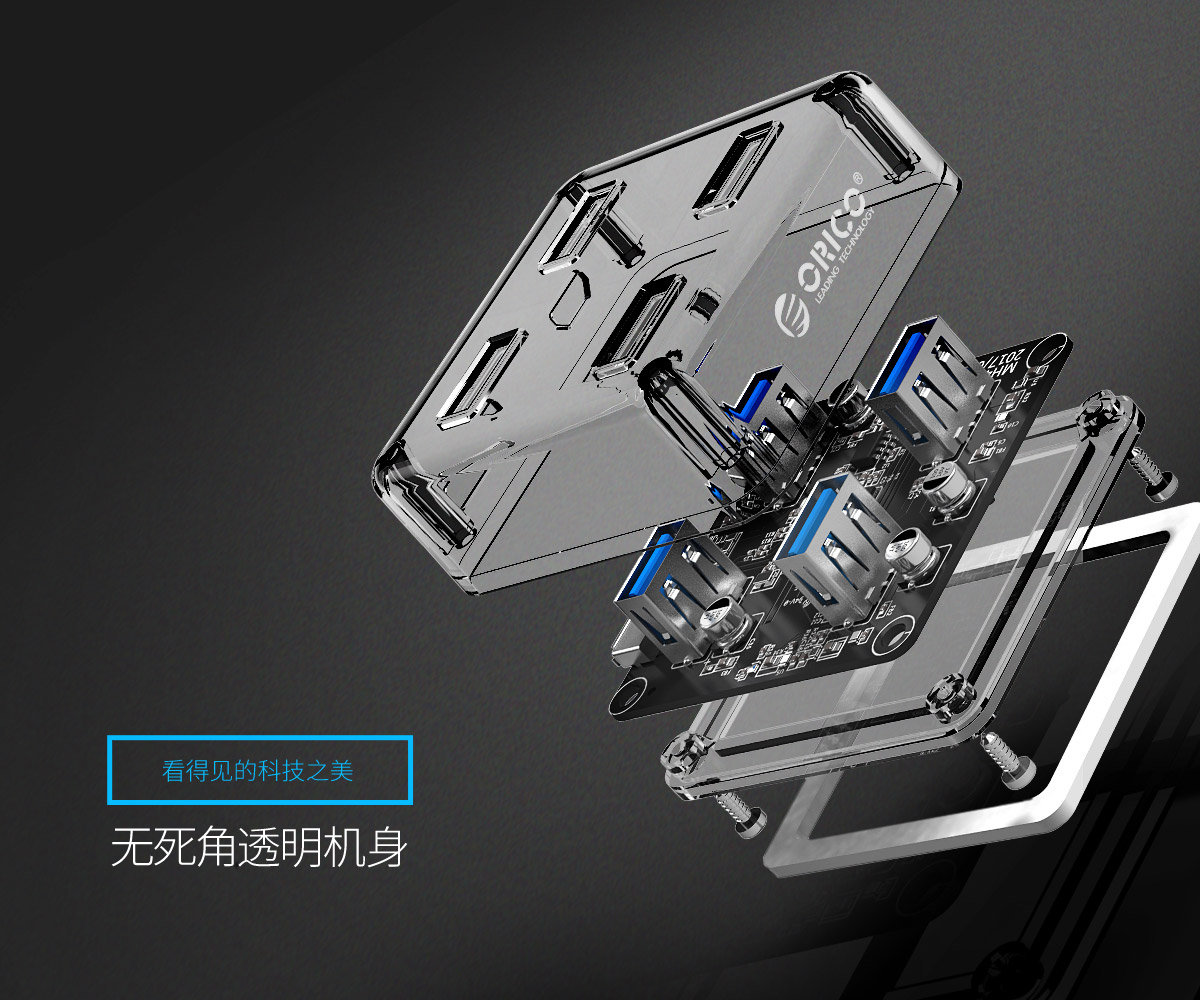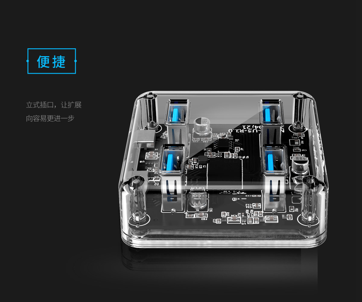 4口USB3.0透明桌面集线器