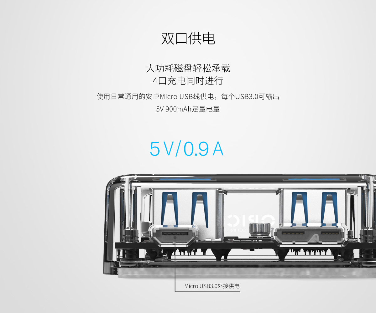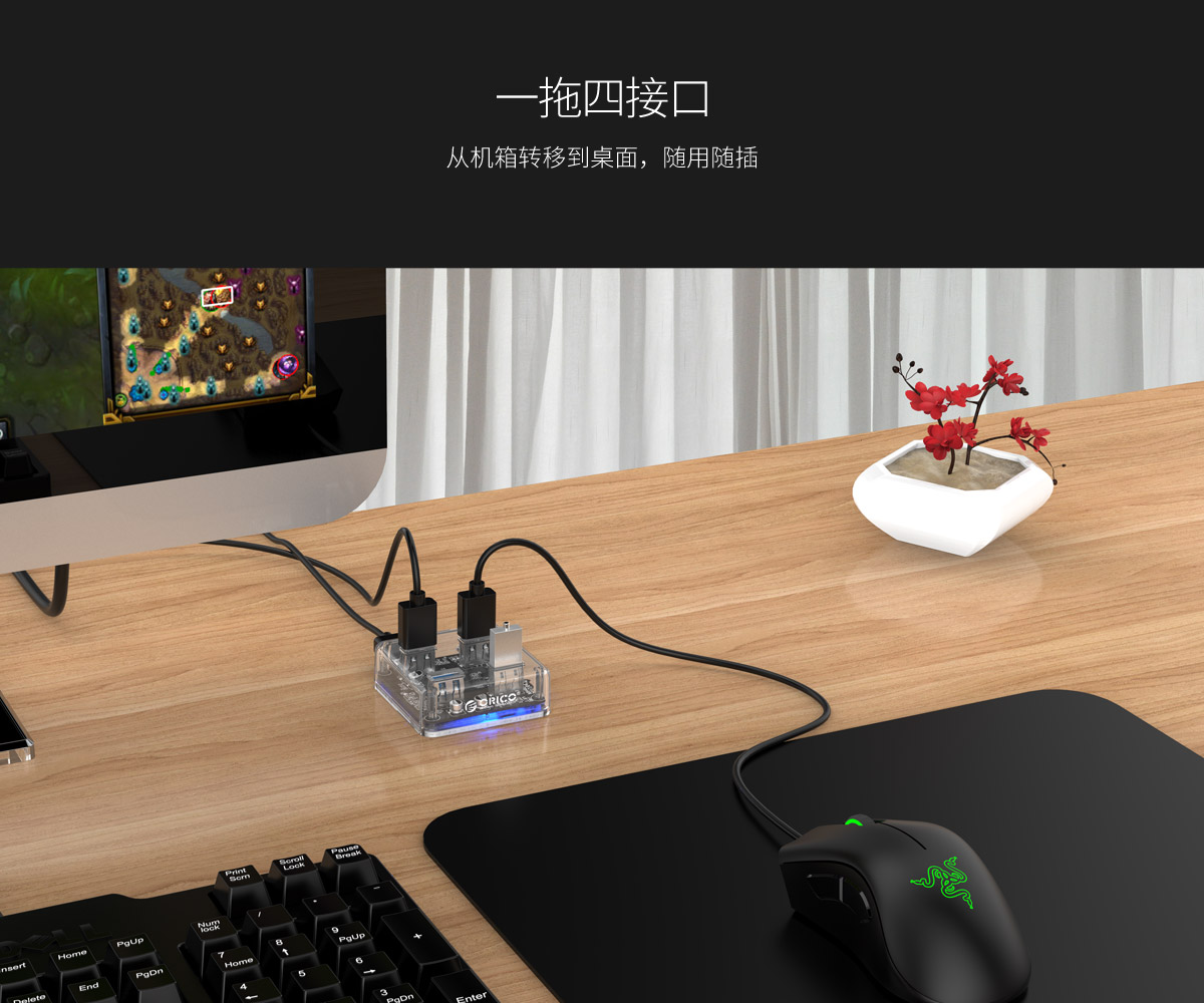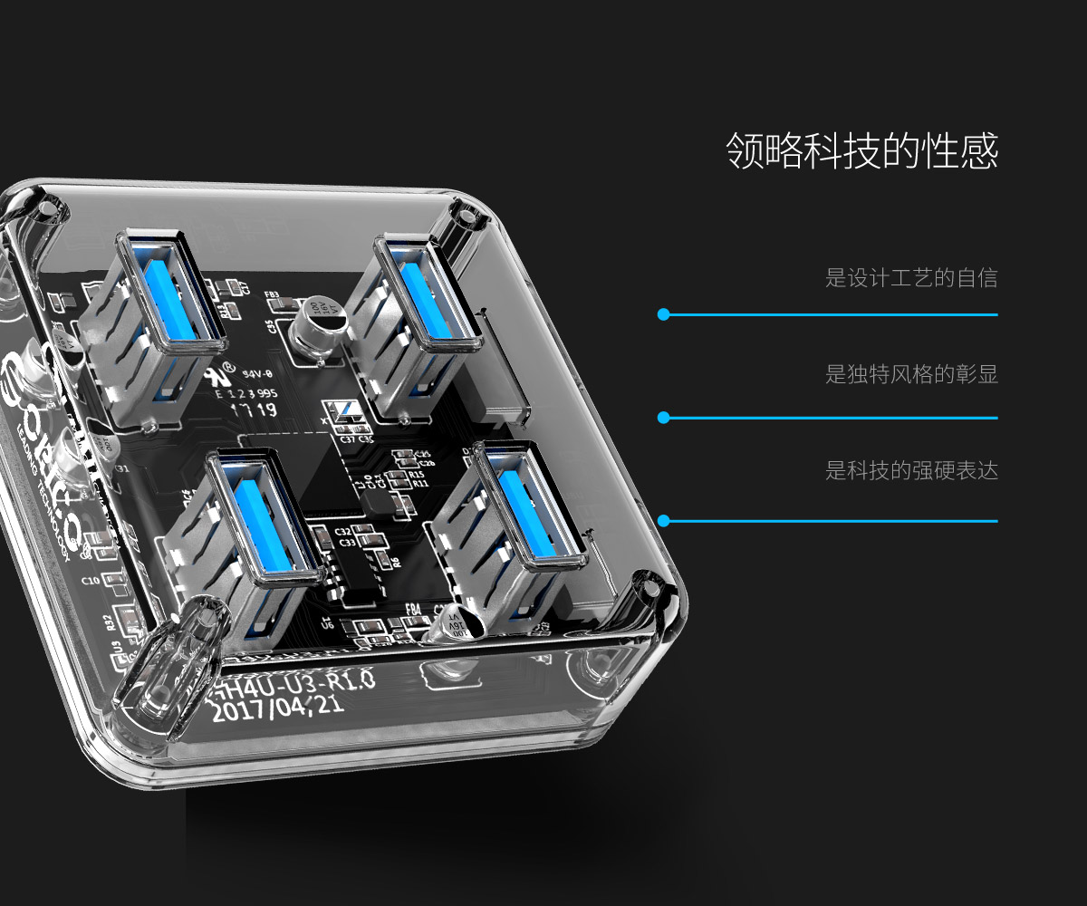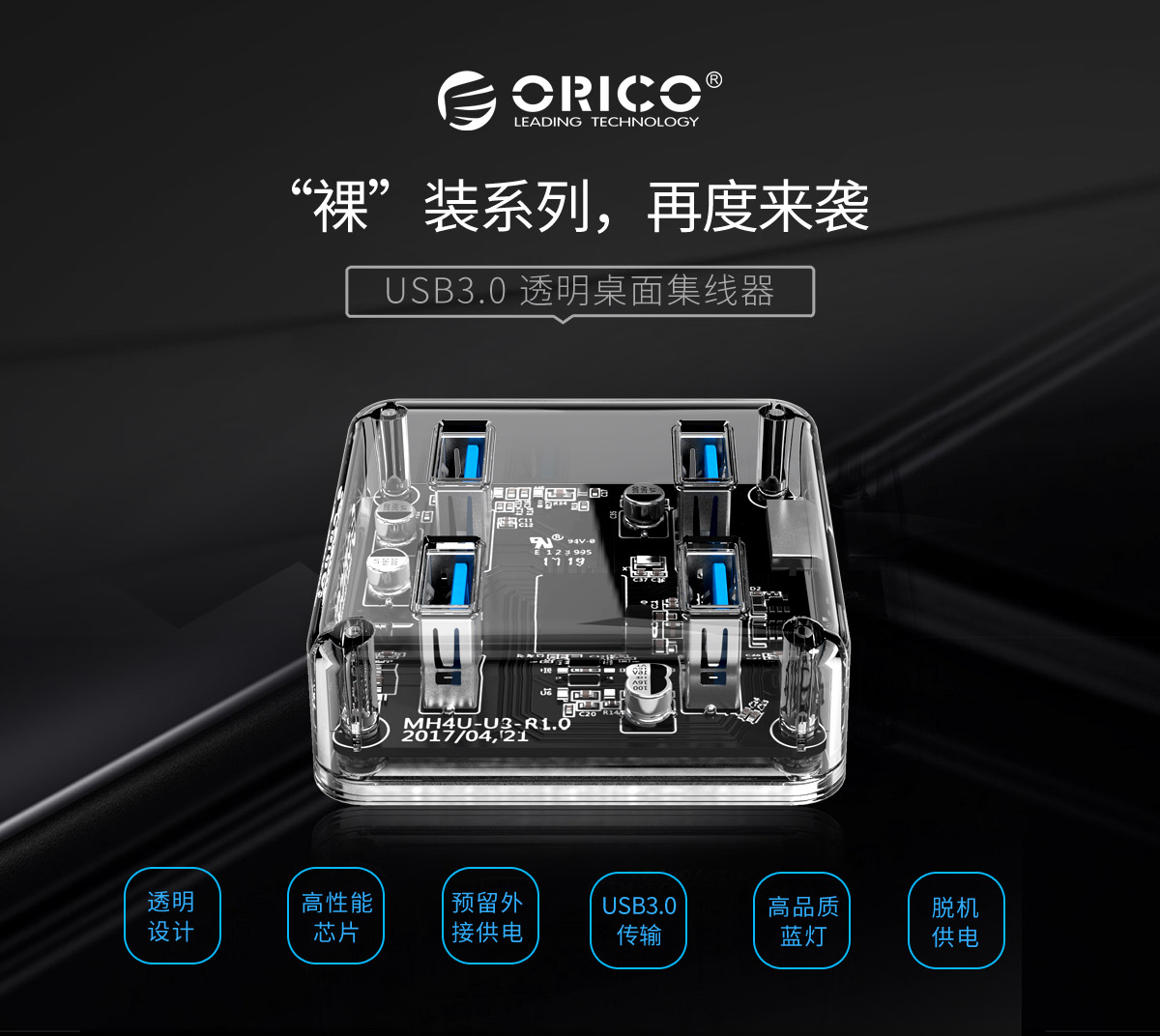 4口USB3.0透明桌面集线器