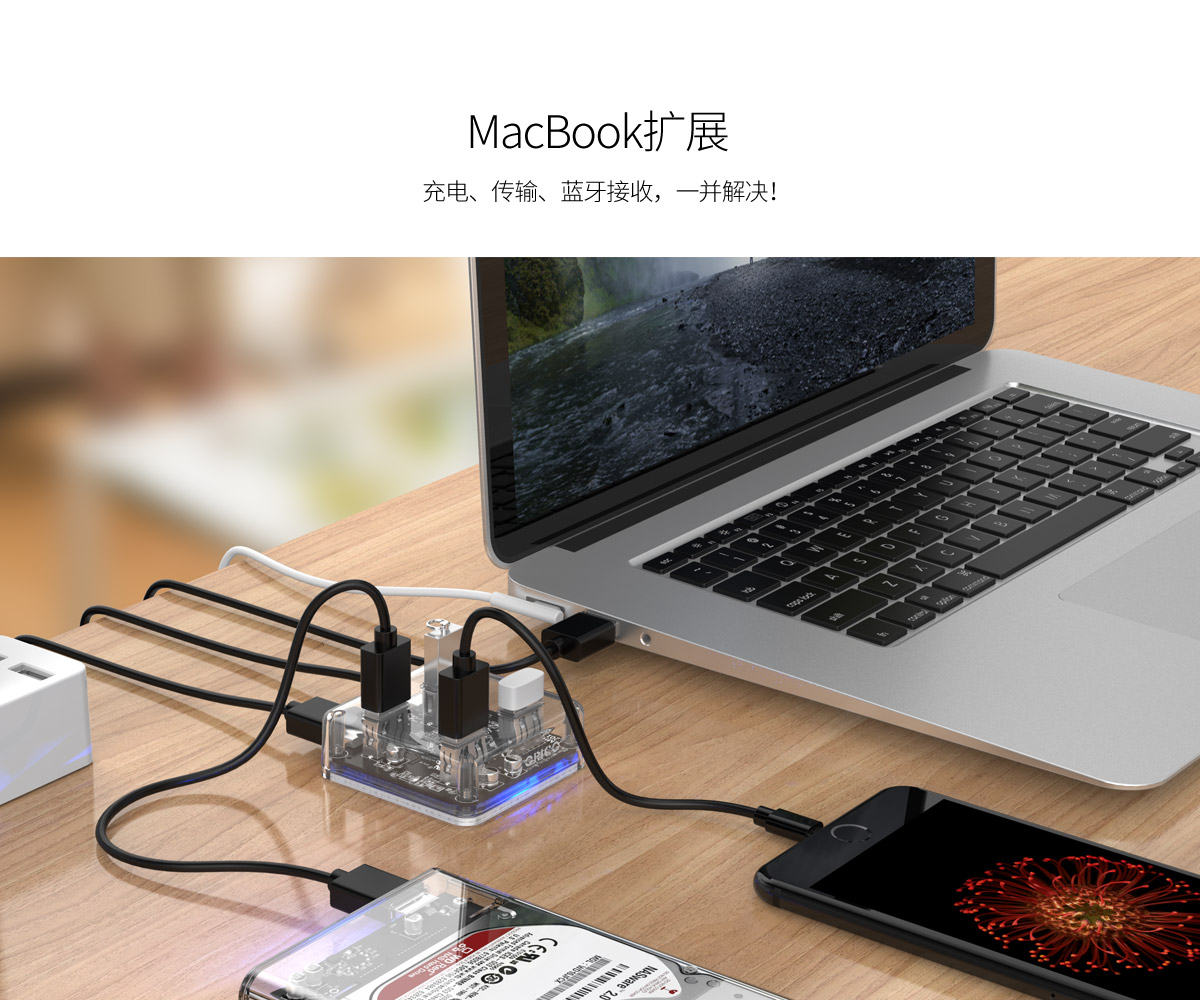 透明集线器,国际标准认证,品质蓝灯提示,多种系统兼容