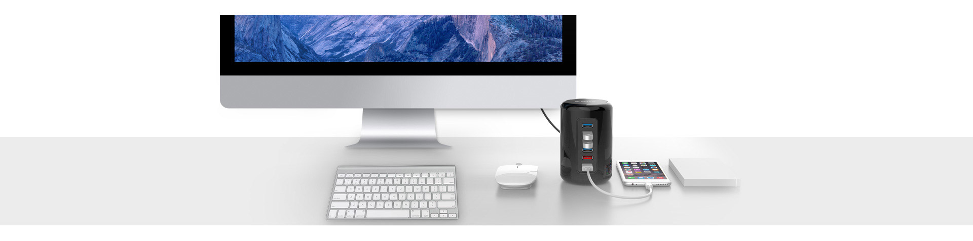全新的RH4CS灵感源自Mac Pro, 与众不同的外观设计高出传统的直线型结构,简洁轻巧的构造,圆润舒适的弧线,精心打造的高强度工程材料与钢琴烤漆亮面结合,与您的电脑、笔记本等设备搭配,堪称工艺品级桌面专业扩展。