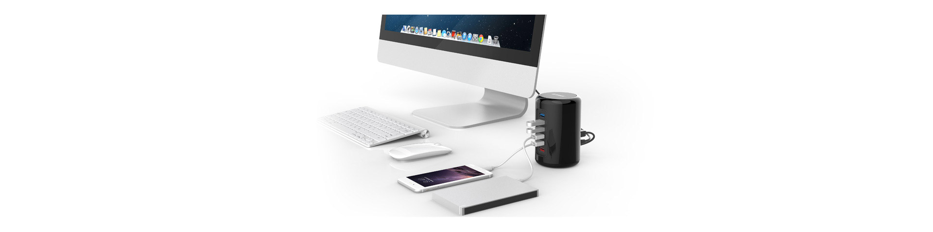 在具备USB3.0高速传输的高性能外,高度整合智能充电规范,在为电脑提供USB3.0扩展的同时,还能为手机/平板等外接设备提供1.0至2.4A的电流进行快速充电。