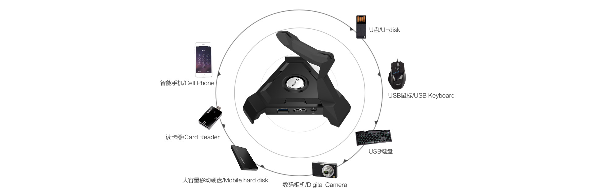 “天蝎”配备4个USB3.0扩展端口,一次性满足您对端口数量的需求,不用担心端口数量不够,分散式接口设计,更可容纳大型USB外接设备。