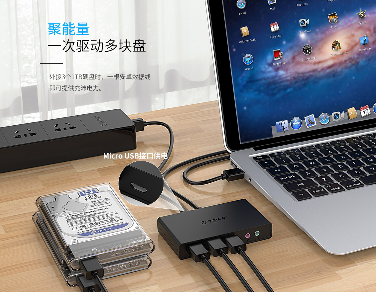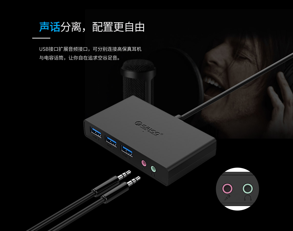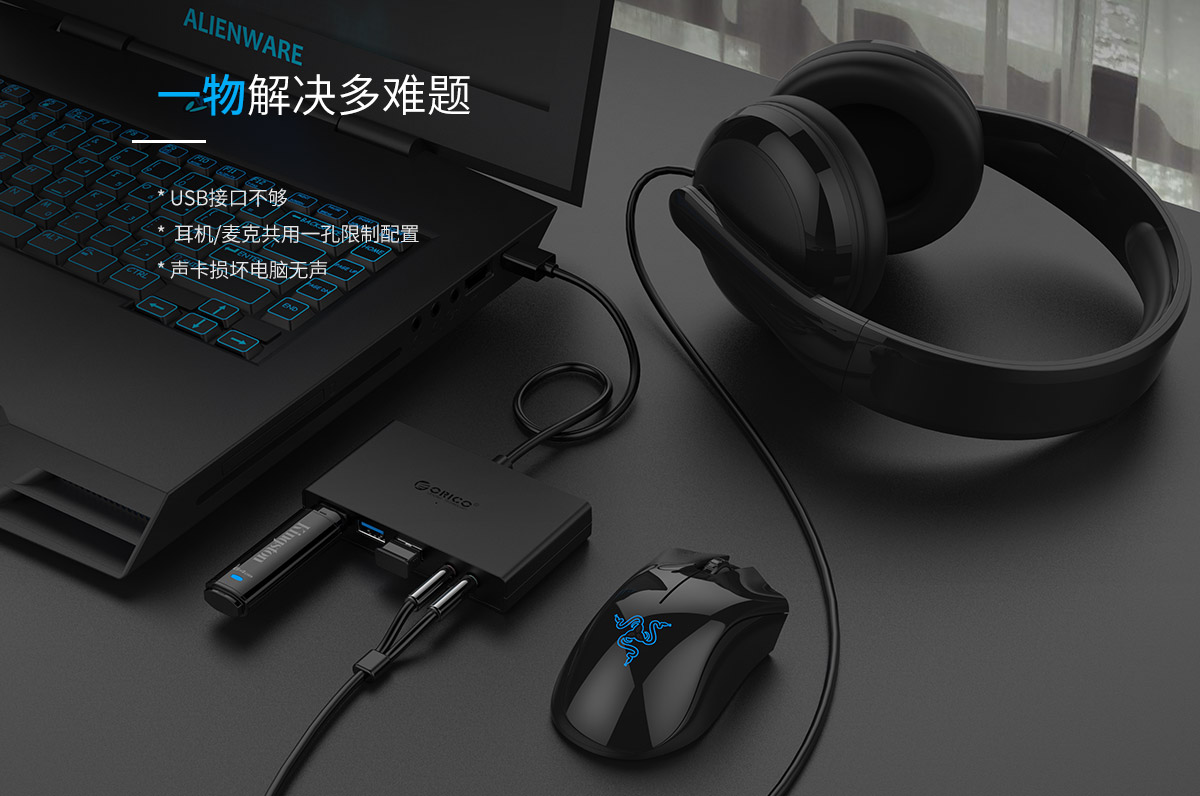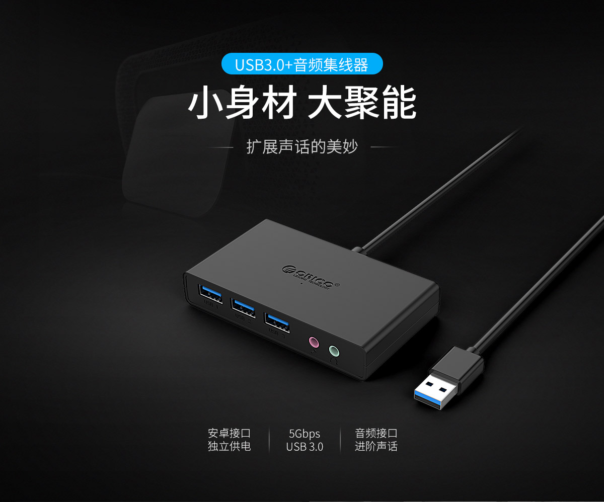 3口USB3.0扩展 连体设计 带音频和麦克风接口 多种可选线长