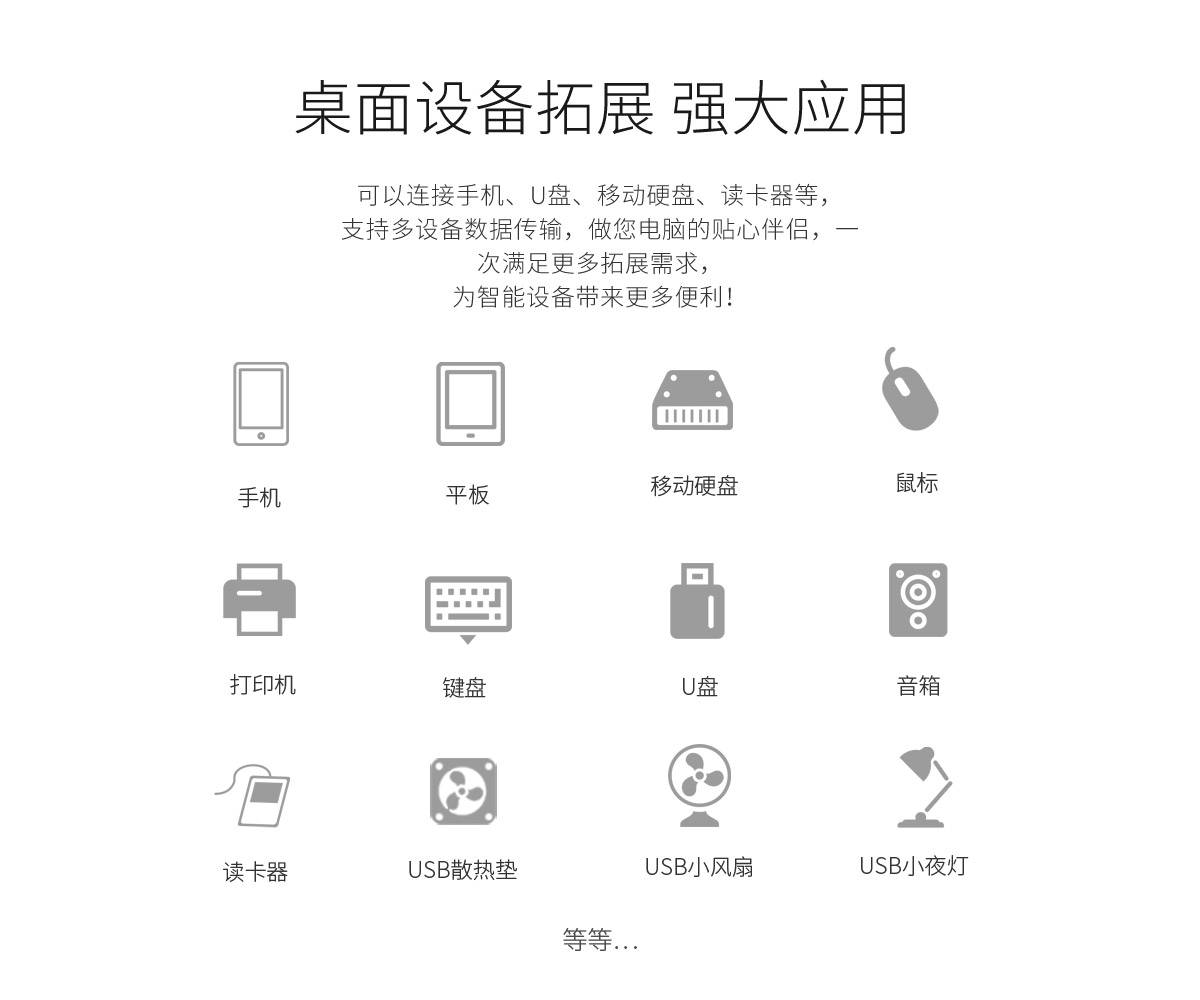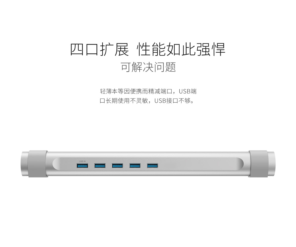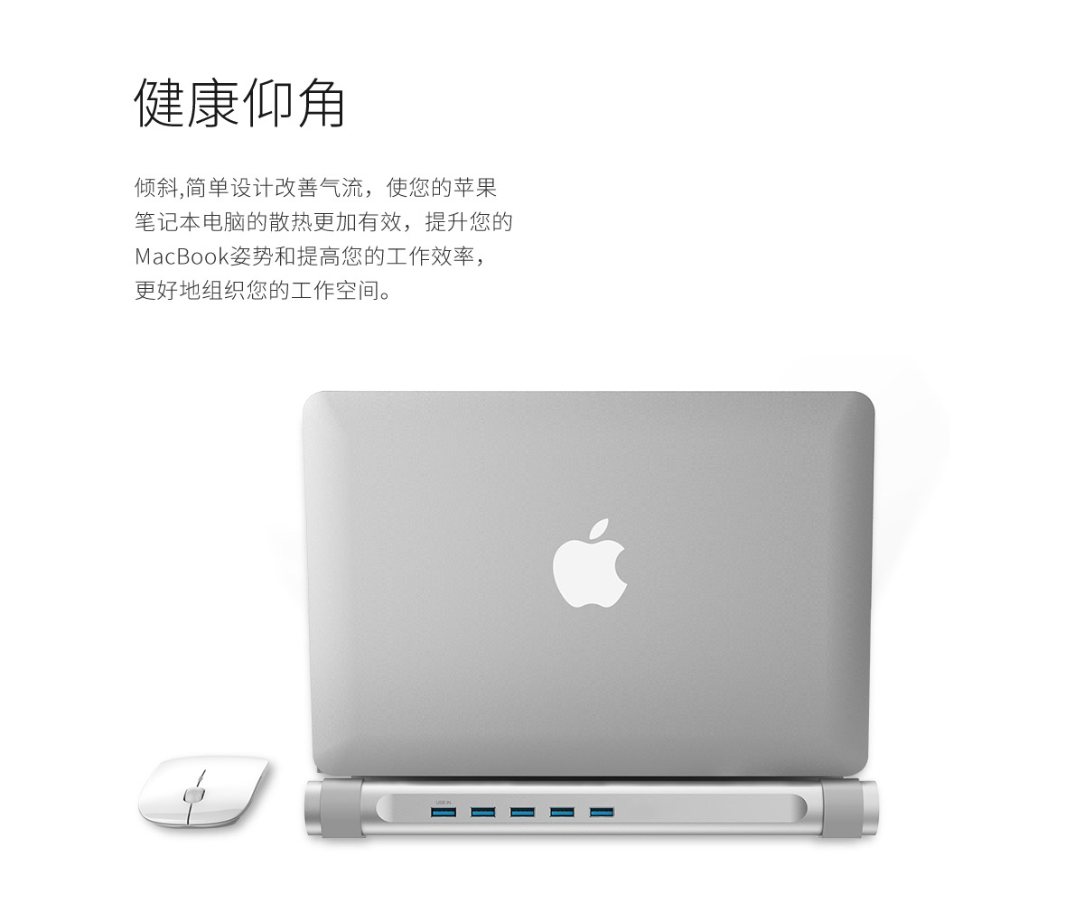 4口USB扩展 带支架功能 稳定防滑 健康仰角设计 MAC风