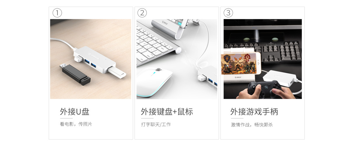 连体设计 小巧便捷 4口USB扩展 支持热插拔 ABS阻燃材质