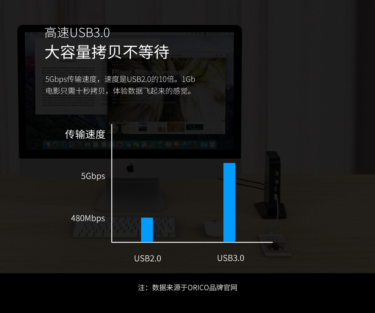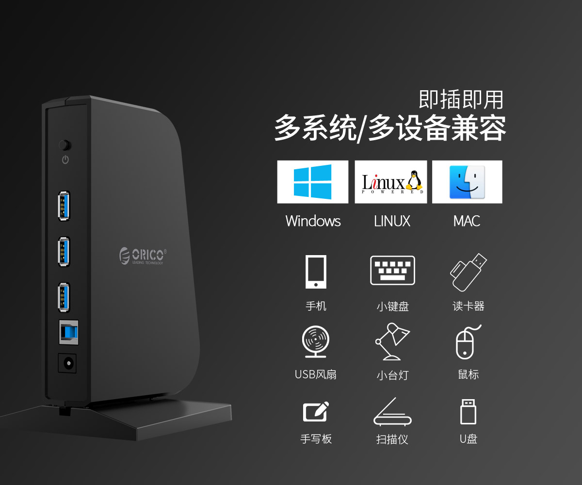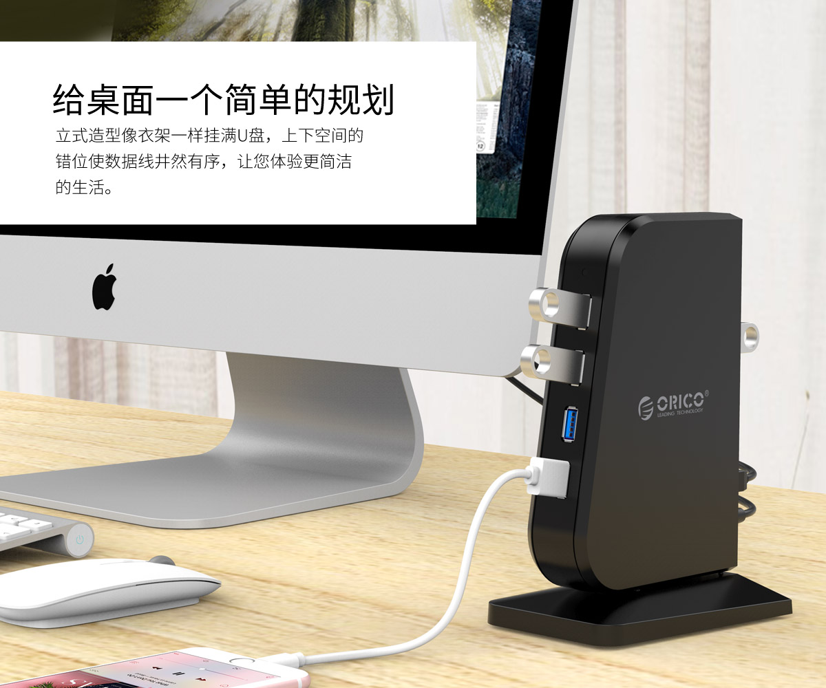 7口USB3.0集线器 立式设计 LED蓝色指示灯 均支持BC1.2快速充电