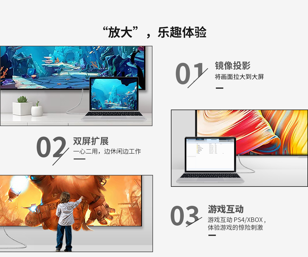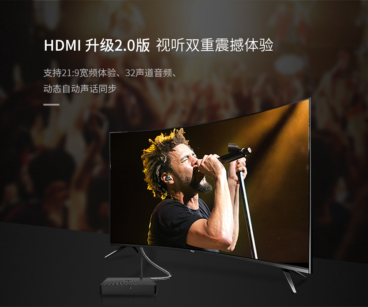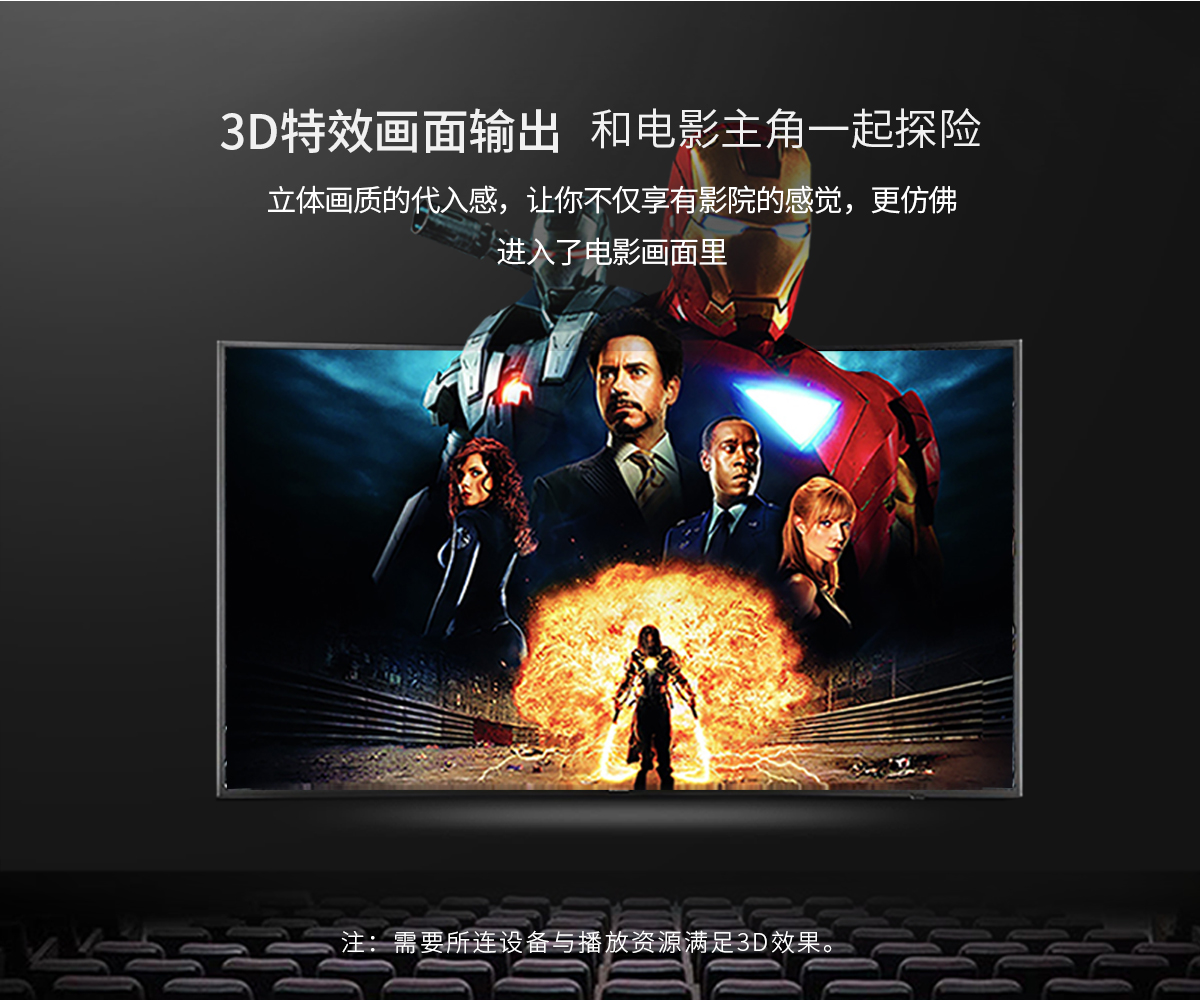 4mm纤细线身,HDMI2.0,4K高清画质,3D特效画面,音视频同传