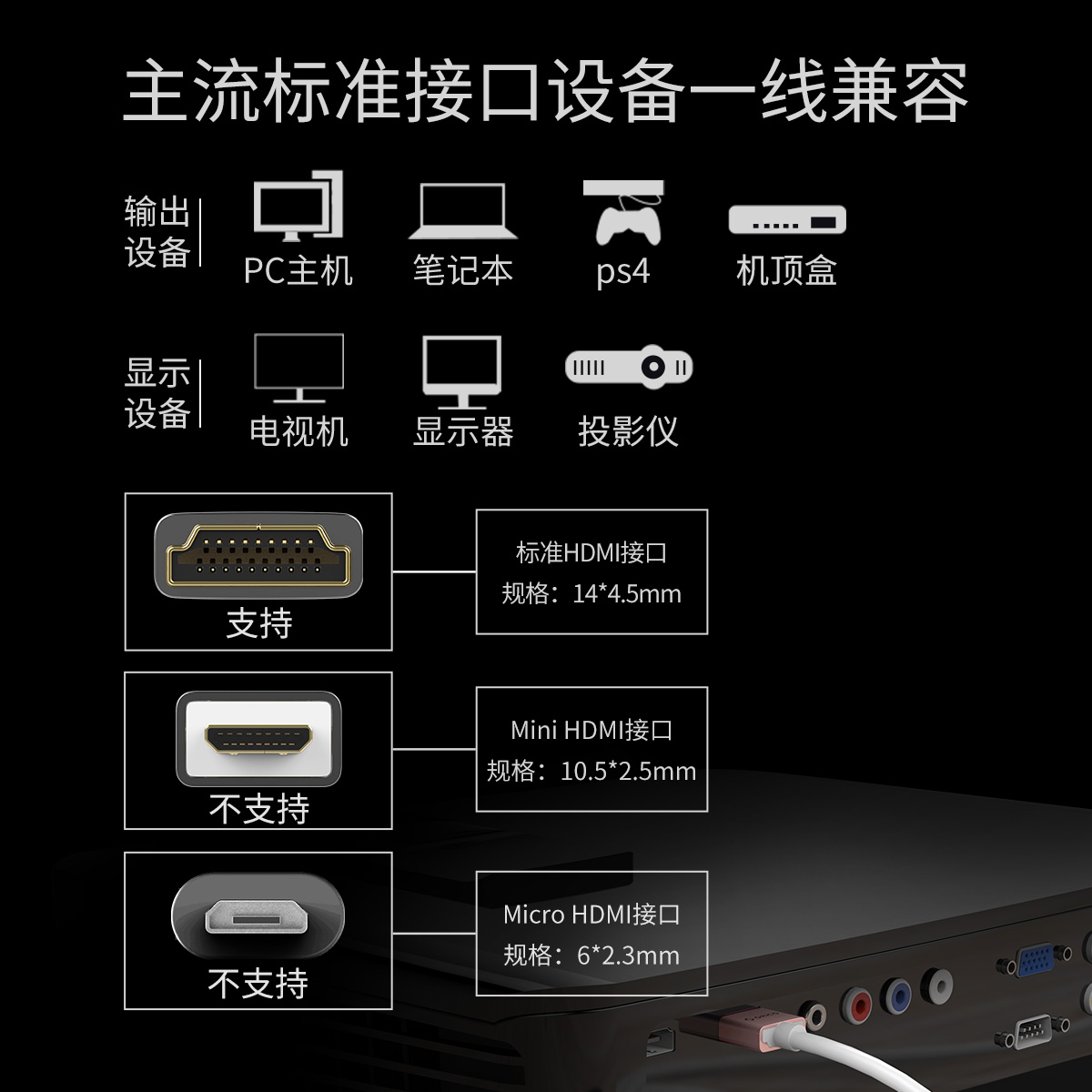 4mm纤细线身,HDMI2.0,4K高清画质,3D特效画面,音视频同传