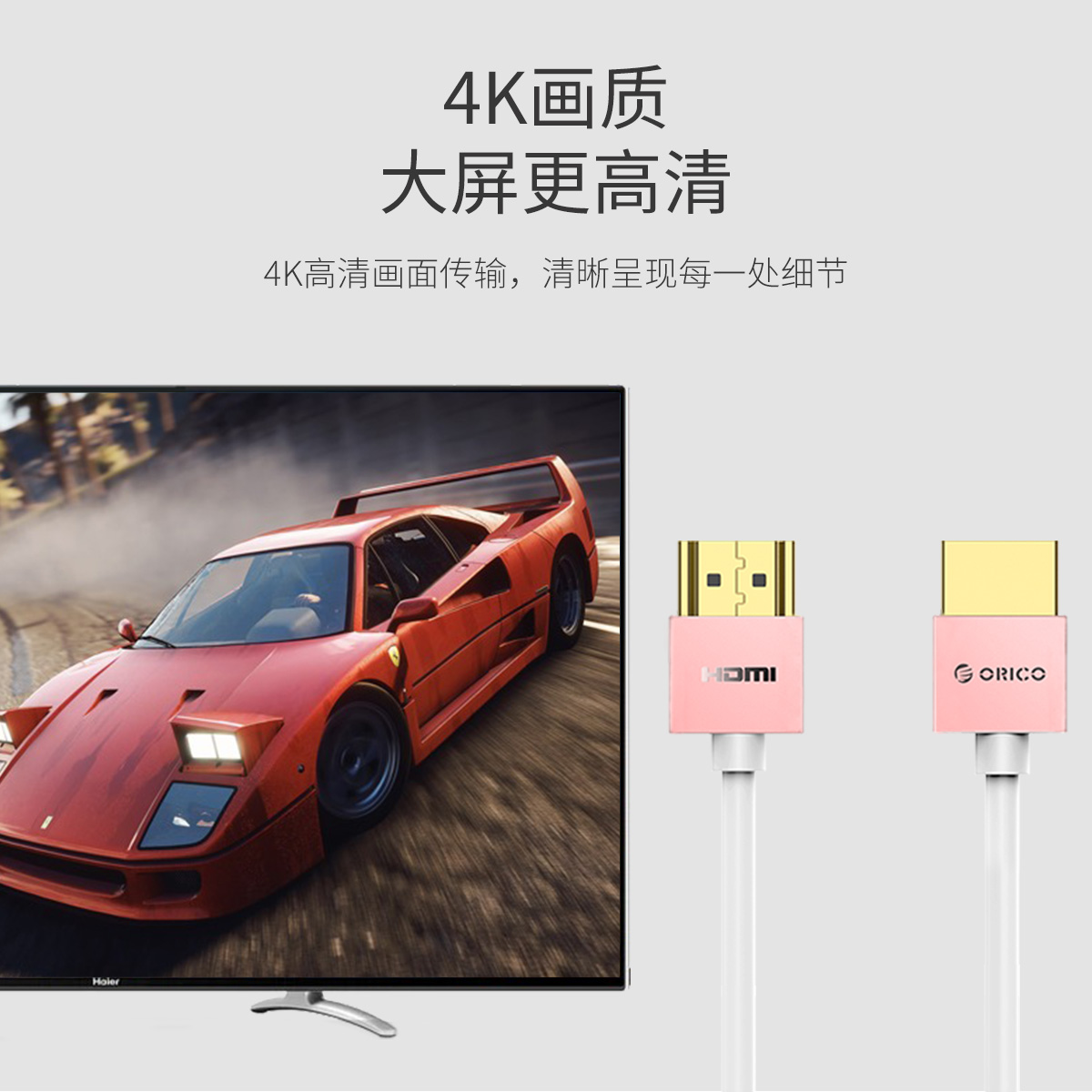 HDMI转HDMI公对公纤细版影音传输线粉色PVC线
